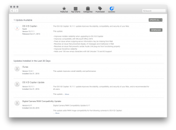 I try to update to 10.11.1 but MAS shows no updates available in Updates tab.