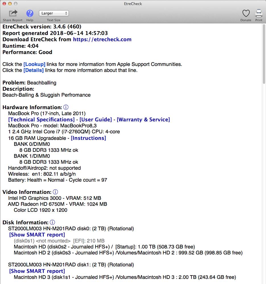 I have done Etrecheck, Malware Bytes & run repair permissions & repair disk and all seem fine there. Avast anti-virus has not flagged up any issues. Macintosh HD1 which is acting as the normal start up drive is less than half full.