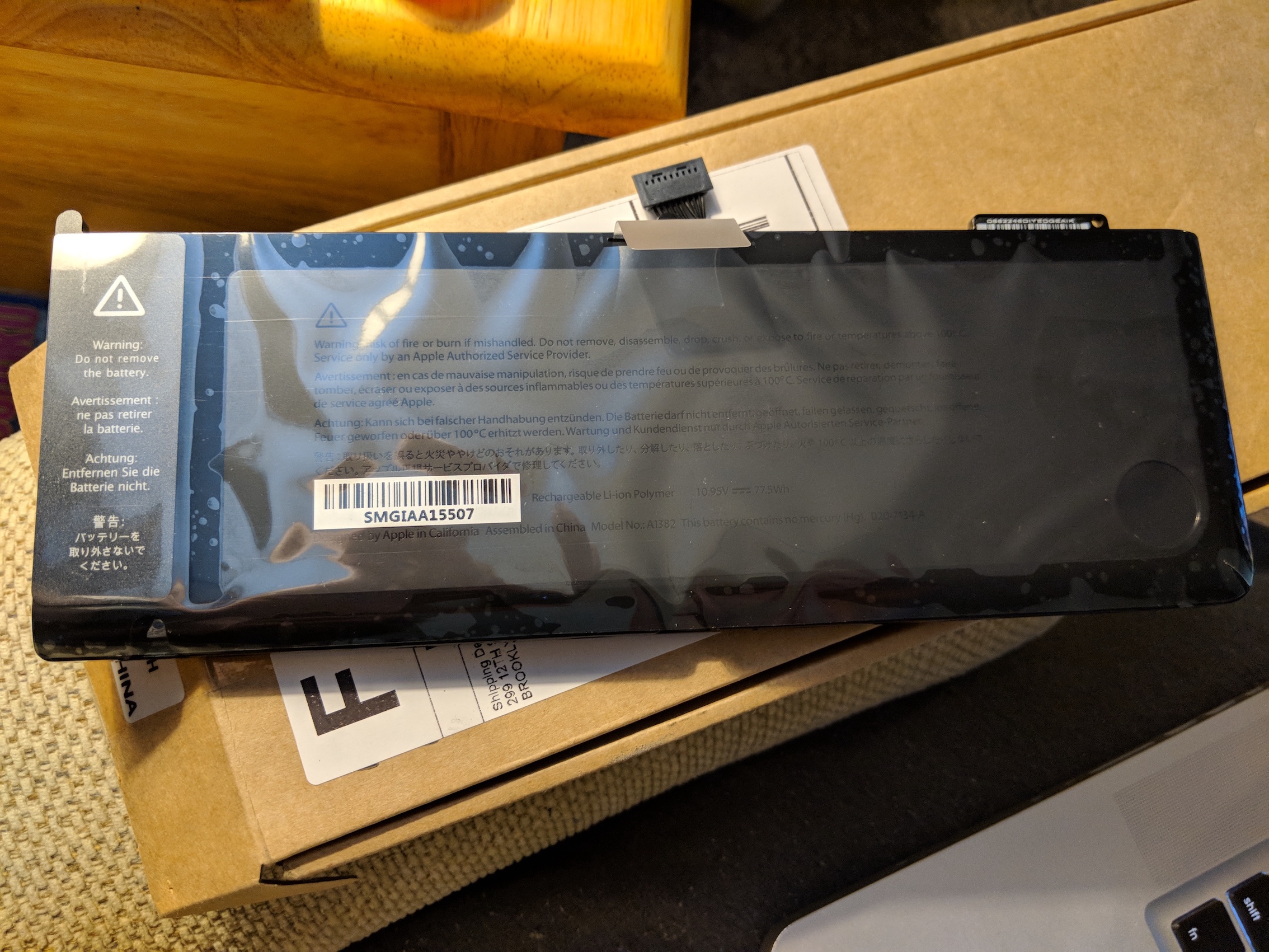 How did I know it was an OEM Apple battery? The markings/labels are pretty distinctive, the new one matched the old one perfectly.