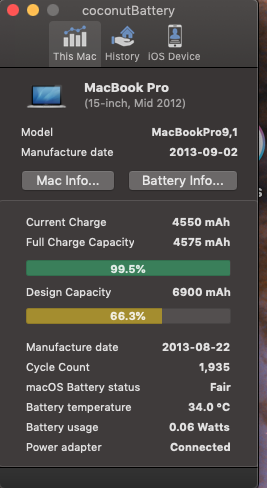 Thanks for your reply. What you say does make a lot of sense, I don't know either why a poor battery would impact on the fans kicking in, but I did read a few times that it makes the machine work harder when battery is old. Just think it's an 8 year old MBP so isn't going to be tip top. Can't see what the original watt spec is on here. Just that it says 'replace soon' and cycle count 1871...