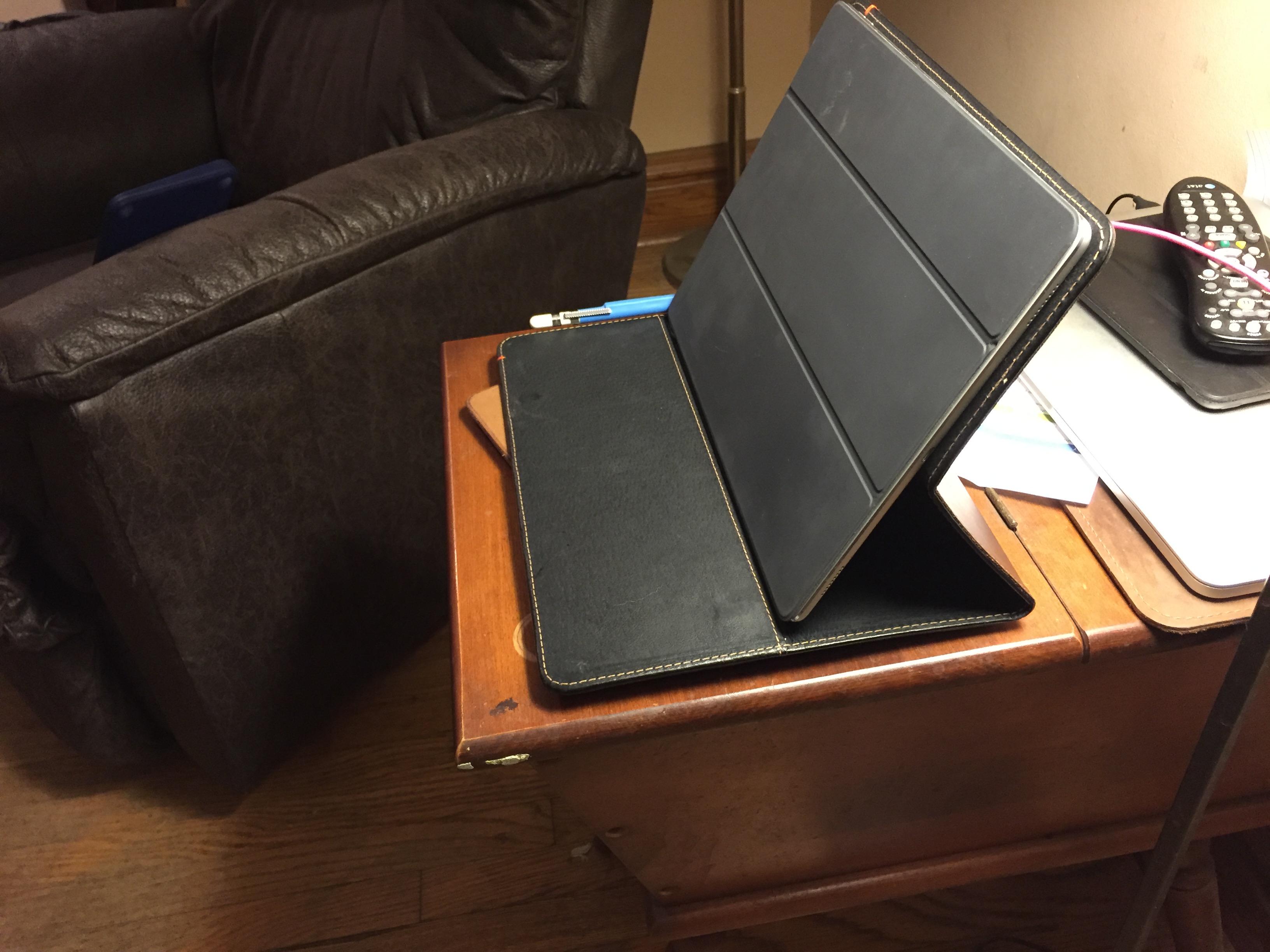 The oxford case securely holds (or seems to at this point) the ipad and makes it quite easy to prop up on my lap and fit with an external keyboard on the leather cover (I use the apple keyboard). It is stable to type on. The smart cover feature works well. The pocket seems to work better for papers than holding the apple pencil - with the pencil it is just lumpy and odd for me and I worry about it breaking or falling out.