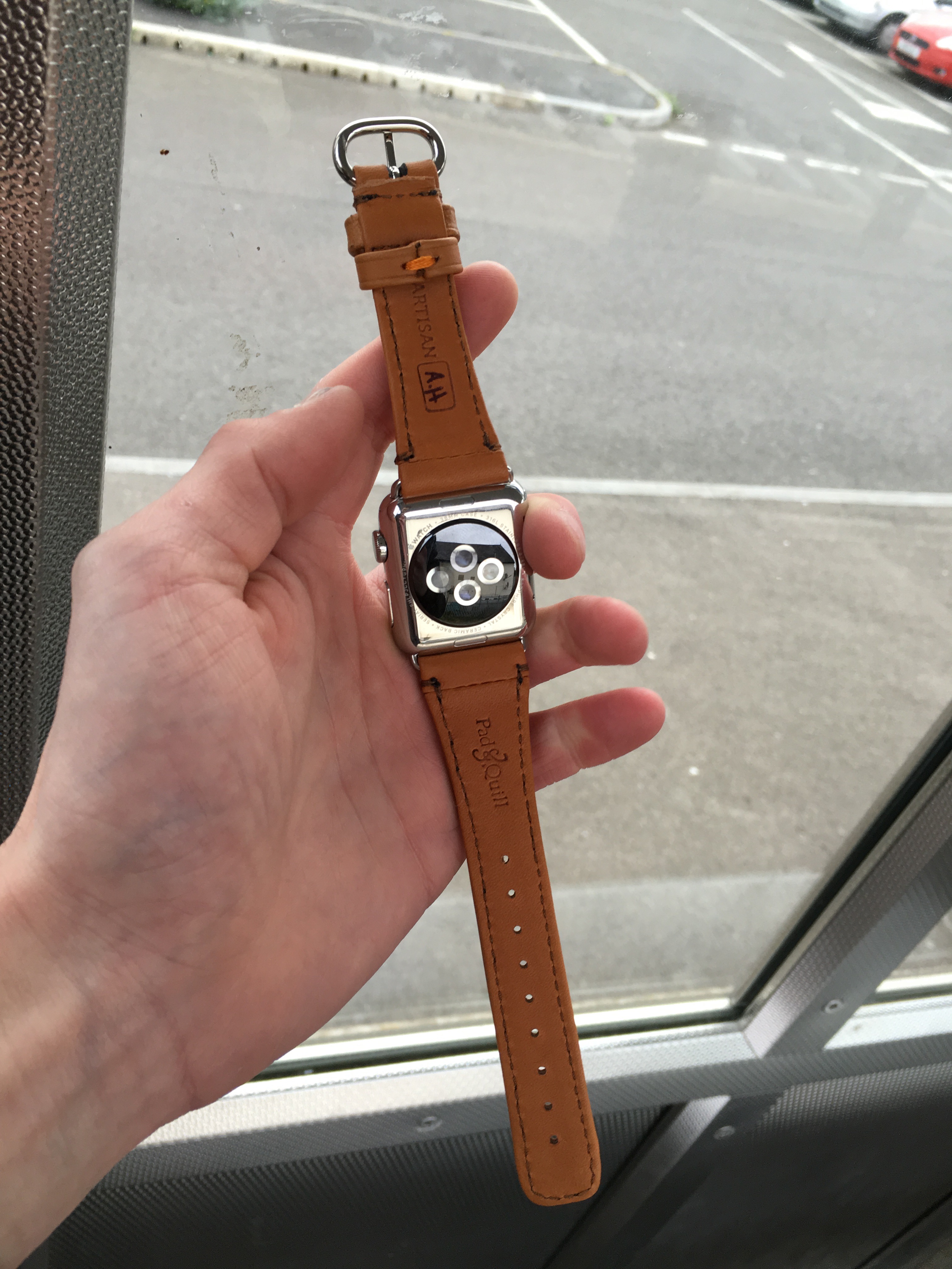 I received the Pad & Quill leather strap yesterday. While it's definitely a premium leather I'm somewhat disappointed with it. My two main grips are it's incredibly stiff. I know leather will soften up, but even after a day of bending it back and forth to loose it, it needs to be about a quarter as still as it is to be comfortable (to me). The strap is also wider than the metal buckle. I can't image why it's like this. Combined with the stiffness it makes it a five minute job to get it on, very frustrating. Finally the whole thing seems a bit oversized for the 38mm watch. Below are some posts with picture comparisons with the new Apple classic buckle strap.