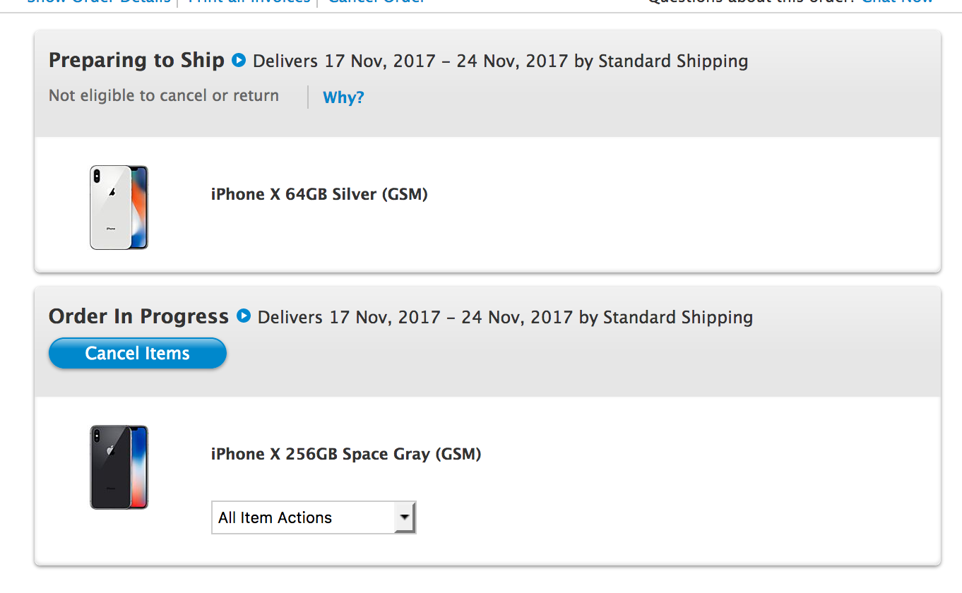Hi, they charged me 3 hours ago, 256GB Tmo (No Iup). Still 17-24 Nov but now it says Preparing for Shipment![]()