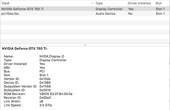 Did a search on this and was unable to find any related posts... Having an issue with a GTX750ti linking at 16x 5GT in Slot 1. I realize this was an issue with older Boot ROMs and cosmetic. Running High Sierra with 141.0.0.0 Boot ROM and the card is linking at 8x 2.5GT still. Some screenshot attached with details. Cl!ng is showing low scores as well. Performing the same as the High Sierra ROM was showing.