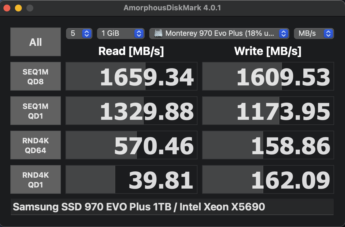 The plan is to move the boot / application drive to the PCI-Express slot with an adapter and NVMe card as well so the drives and speeds can be the same but then upgrade to Ventura via OpenCore.