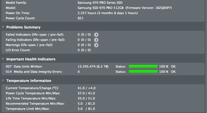 Every high performance M2 blade overheats and starts to throttle without a heatsink. I moved my 970 Pro to one of my Angelbird Wings PX1, now it's at 41ºC:Wow. Sounds like it would be worth be worth paying extra for a better adaptor! Would you recommend a better option than the 970 Pro with less overheating issues? Or should it be ok to use with the right adaptor with a good heatsink?