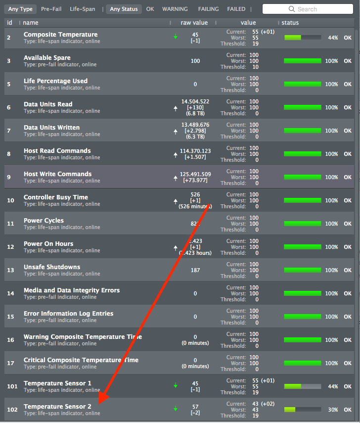Just to you know how easy 970 Pro overheats, I just moved my 970 Pro, my main boot drive, to a non heatsink adapter to do some tests and 5 minutes after the boot, DriveDX warned me that the sensor 2 of my 970 Pro, was at 74ºC.