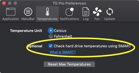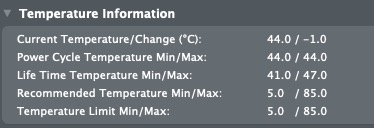 The important setting to pay attention is the maximum temperature for the session, to track the spikes in temperature, and the other SMART settings that are showed in every detail.