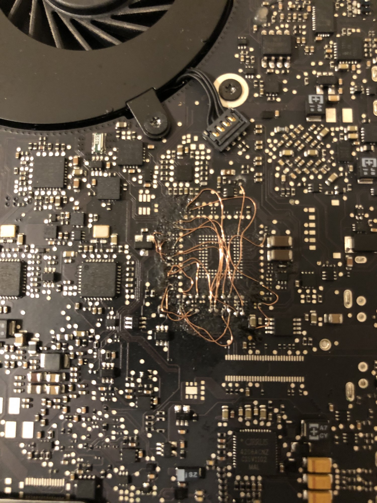 I recently picked up this 2012 15 inch MCP for it's display as I ripped the webcam cable on my 2010. The pawn shop selling it said that the motherboard was dead, however, after opening it up I saw that somebody performed a gMux bypass and desoldered the vRam chips. I managed to solder back the damaged wires and add those that were completely missing. Not sure if I missed a wire but here's the results I got.