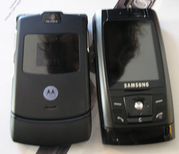Much tinier and lighter than the Motorola, I even sent text messages with these. The T100 got a bit flaky at some point, needed a piece of card behind the battery to work, so I got a T105 as it was exactly the same, just silver instead of blue.