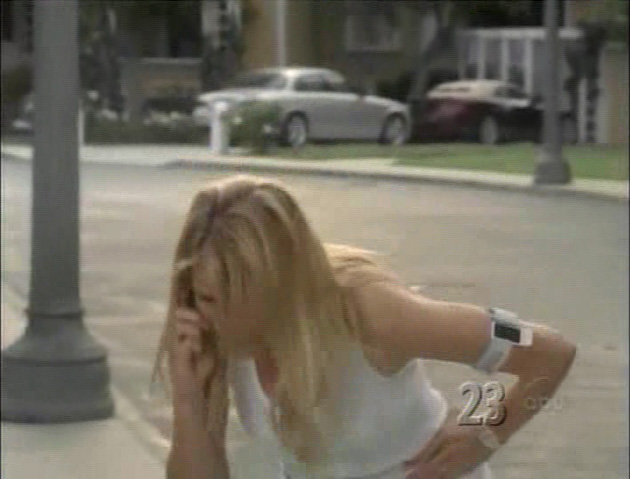 In Desperate Housewives tonight, Edie Britt is jogging when she gets a call from what looks like a black 1st generation iPod Shuffle in an arm band. I will try to get the video of the 13 second clip on YouTube. In the meantime, you can check out the pictures I've attached.