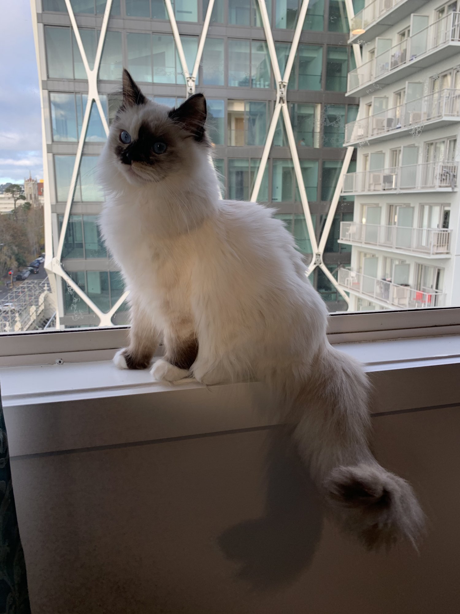 I miss him. He was misdiagnosed by an idiot vet, and didn't get treatment for hyperthyroidism early enough. He would occasionally have surges and lose weight and get so spacy, he would walk around leaning on things. One particular bad spell, I was able to get him back feeding him those small shrimps that you put in 'salads' made like potato salad. He ate most of the can, and had enough to get his strength back. But one morning, he cam down the hall, leaning heavily on the wall. He couldn't stand up at all, and I grabbed a can of the shrimps, and tried to feed them to him, and he wasn't eating. I was devastated. He came to find me, and tell me he was done. I could barely see through the tears as I drove him to the local vet, which was just down the road. She looked at him, and was shocked. She had seen him less than a week before, and he looked 'skinny' but not like this. The hormones were racing through his body like a 10-alarm fire she said. I was in shock. He was so weak. I held him while she gave him the shot, and I think he was gone in a split second. I hugged him close, and all the air rushed out of his lungs and startled me. There was no attempt at inhalation. I was so shocked. It still makes me cry, even now, after over 30 years. I wanted to sue that jackass vet. Hell, the vet we took him to when he didn't improve knew exactly what his problem was when we came in the door!!! I wish I could clone him. I was told I could, actually. I saved his baby teeth, and a few whiskers. Maybe some day... I buried him with a can of CD, and the rest of his Tapazol. Miss him... He was such a character...