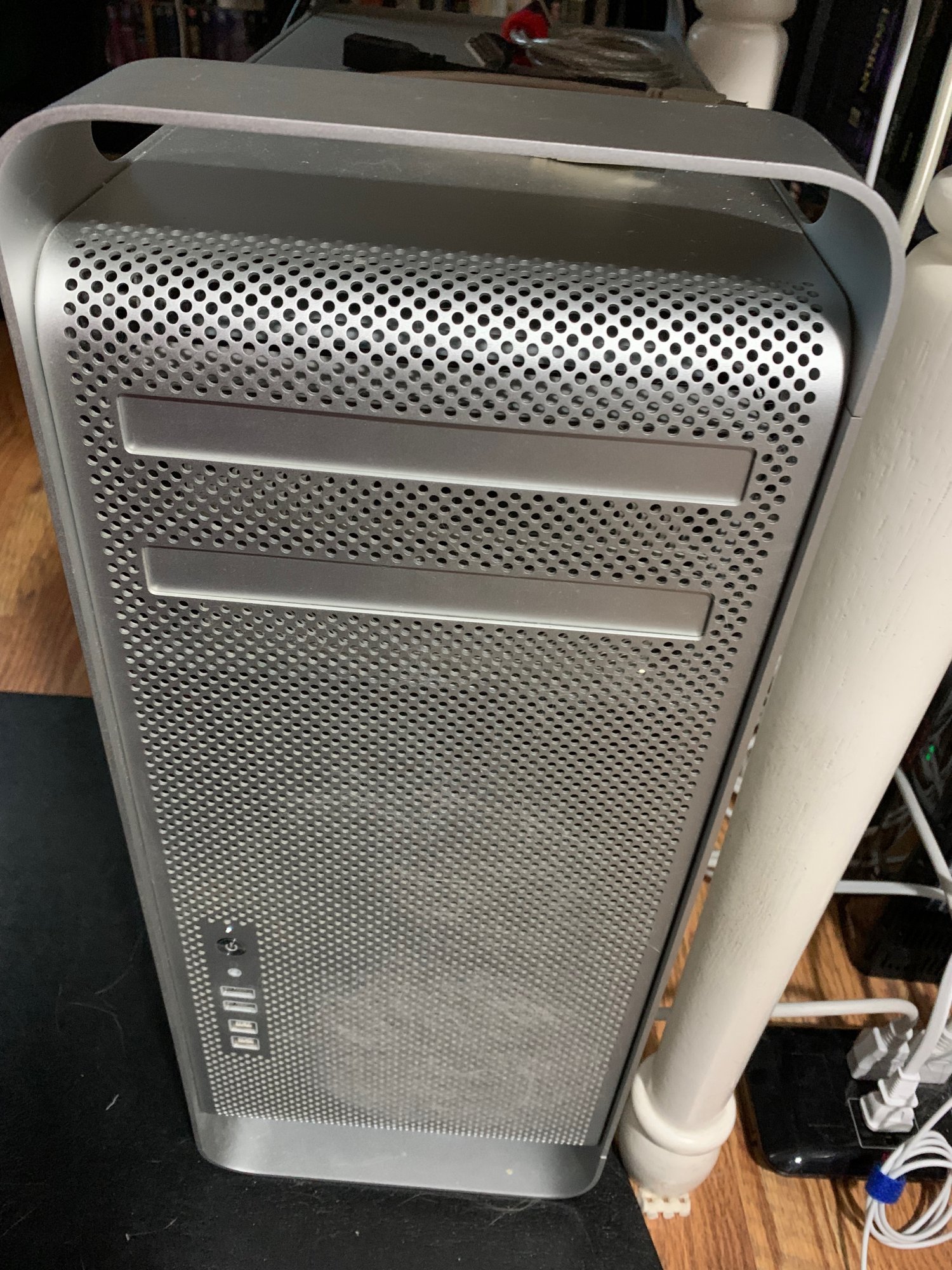 [Edit: So I saw that "blur" on the lower front of the computer after I uploaded the picture. So I look at it closer and run my hand over it. It was a bunch of white cat hair that got sucked onto the front grill. 🙀]