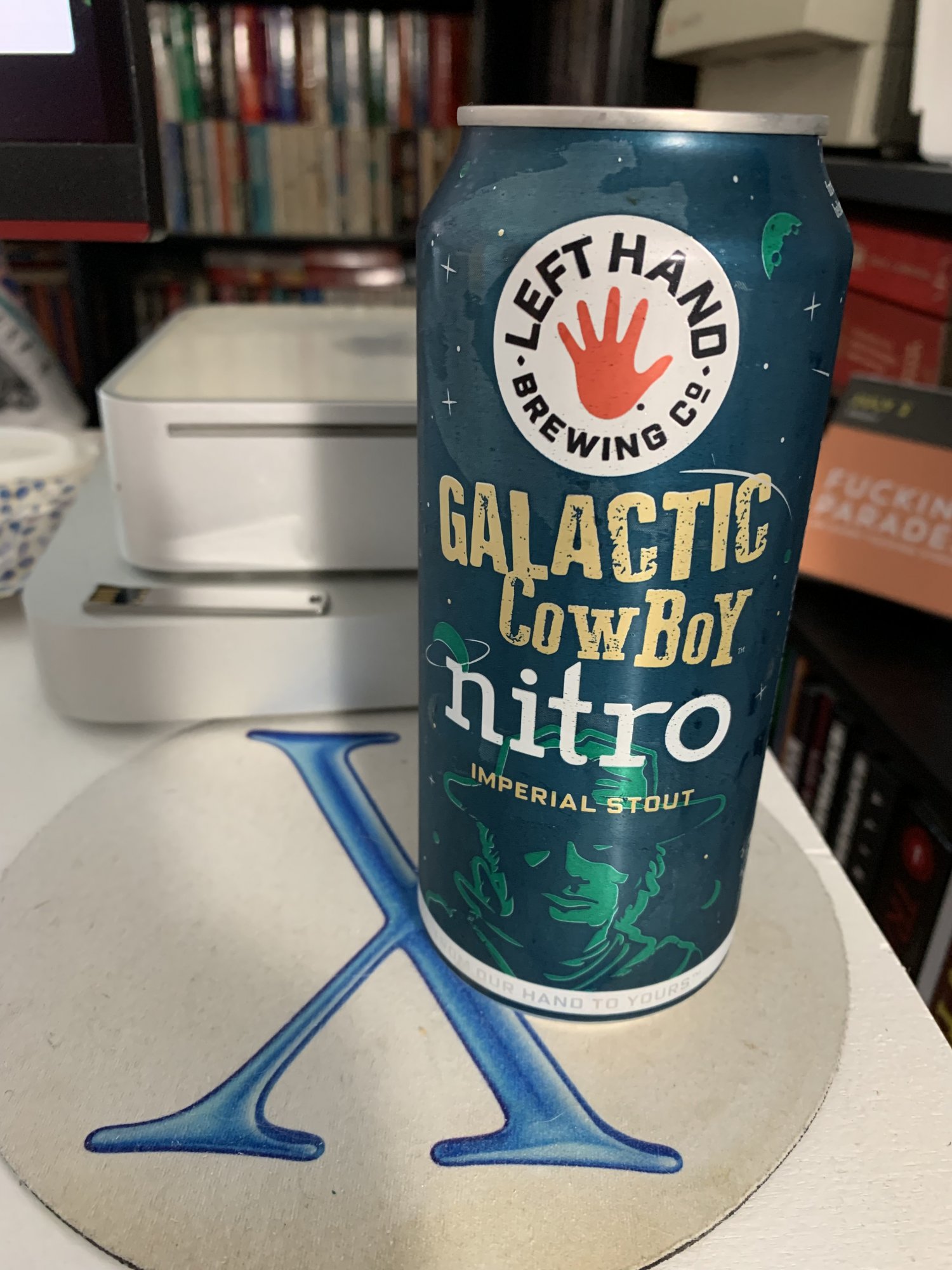 After the 5 mile run in Granville, we went to the Ross Market and bought some groceries, including a sampler of Left Hand Brewing Company's Nitro beers. Here is the Galactic Cowboy Nitro Imperial Stout. And yes, it was stout (9% alcohol).