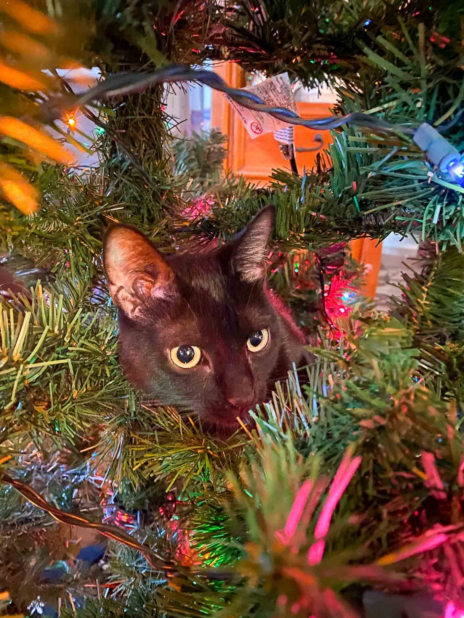 Most cats do. Hot dog a whole bunch of swing toys!his facial expression might not show it, but he LOVES Christmas trees