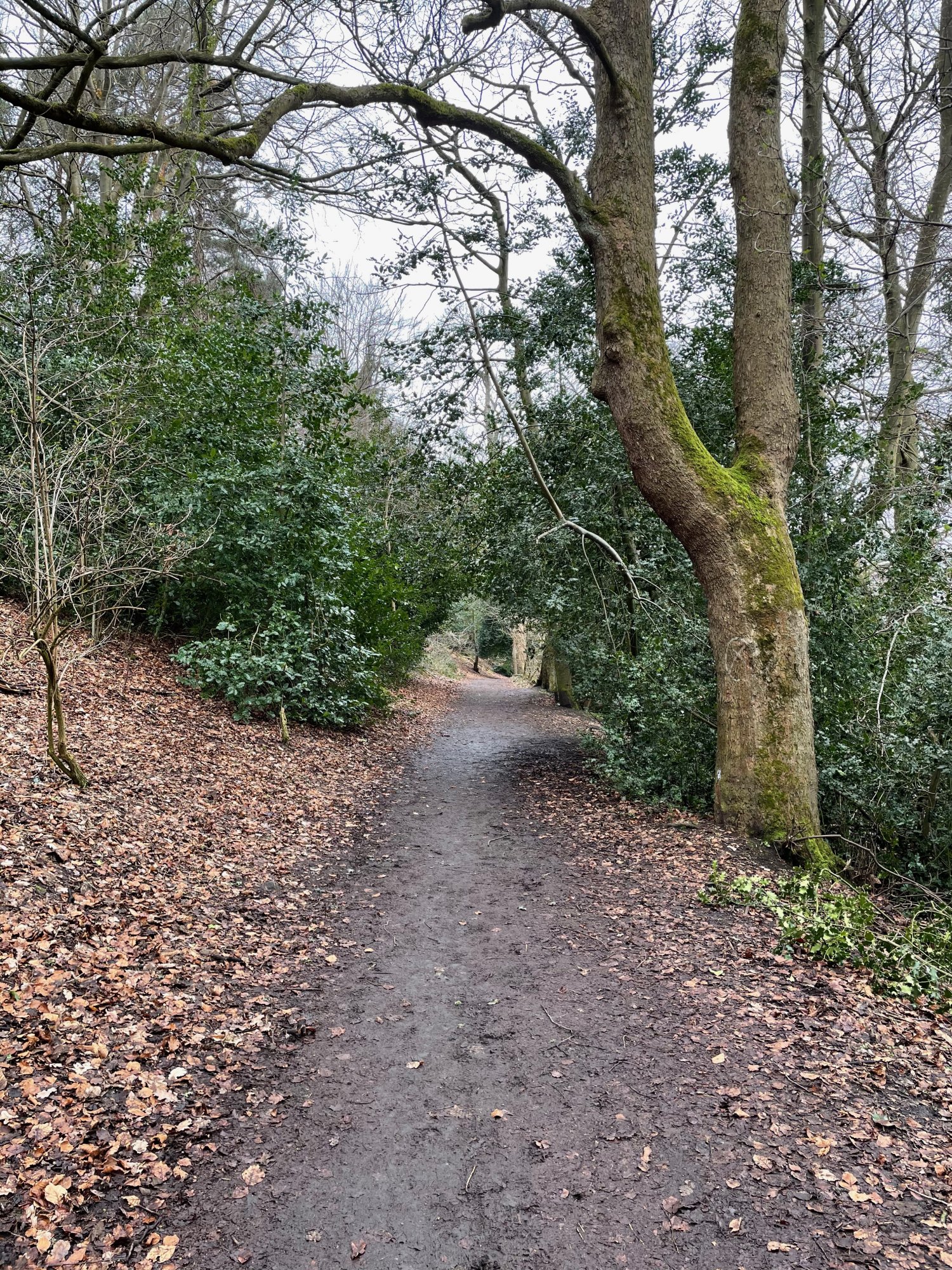 .. neighbourhood walkway lined by an interesting array of tree trunks.