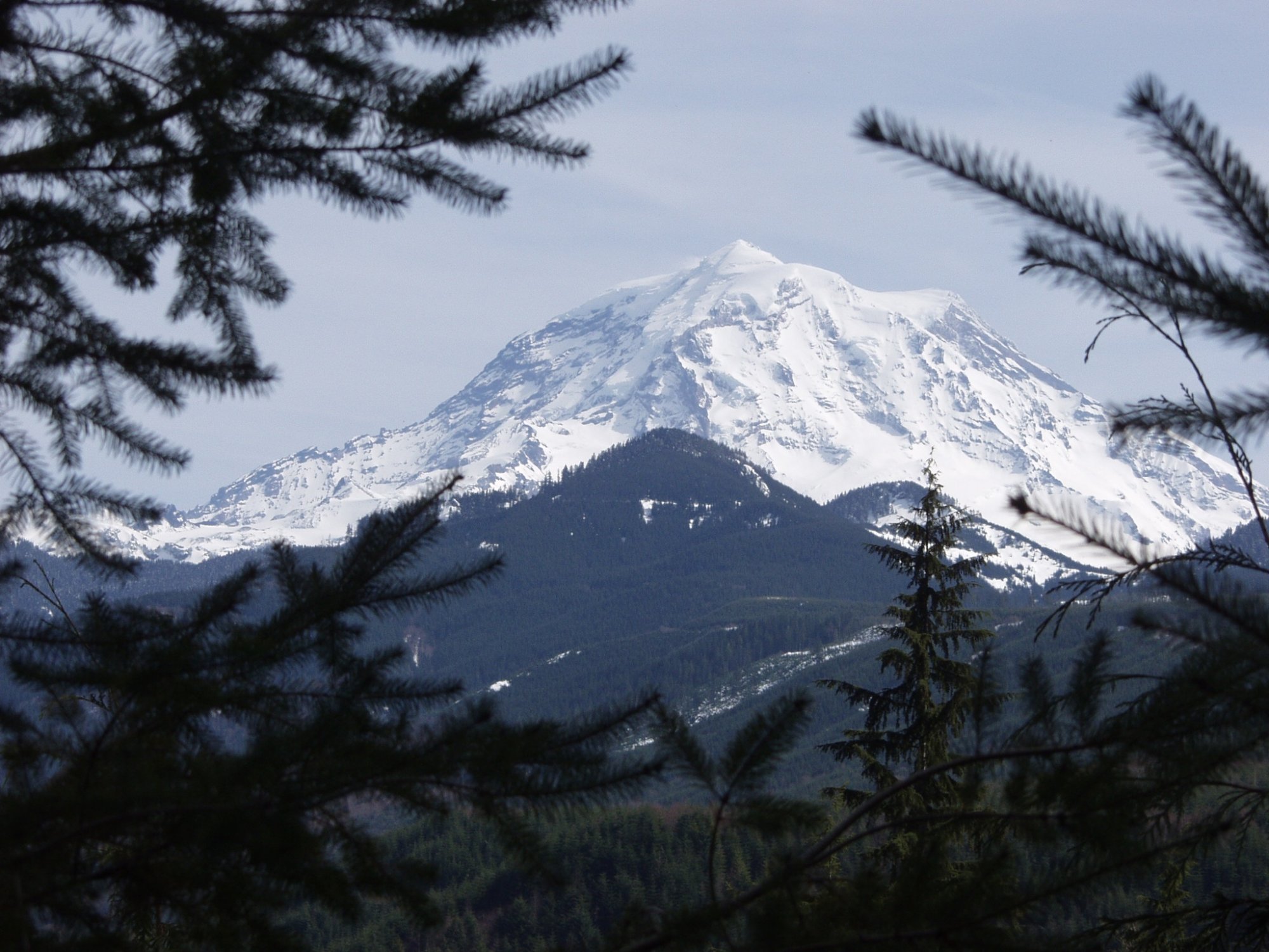 Embarrassing story that makes me shake my head about myself. Mount Rainier is, like others along the coast that were volcanos that grew over time (Mt. St. Helens, Mt. Hood, Mt. Adams, Mt. Jefferson, etc.), is right out in the open, not surrounded by any other mountains, you can see it from anywhere. I remember one night driving home on the highway, passing through Kent, at a location where you could generally see it in all its glory, looming over everything. But it was nighttime, you couldn't see it of course.