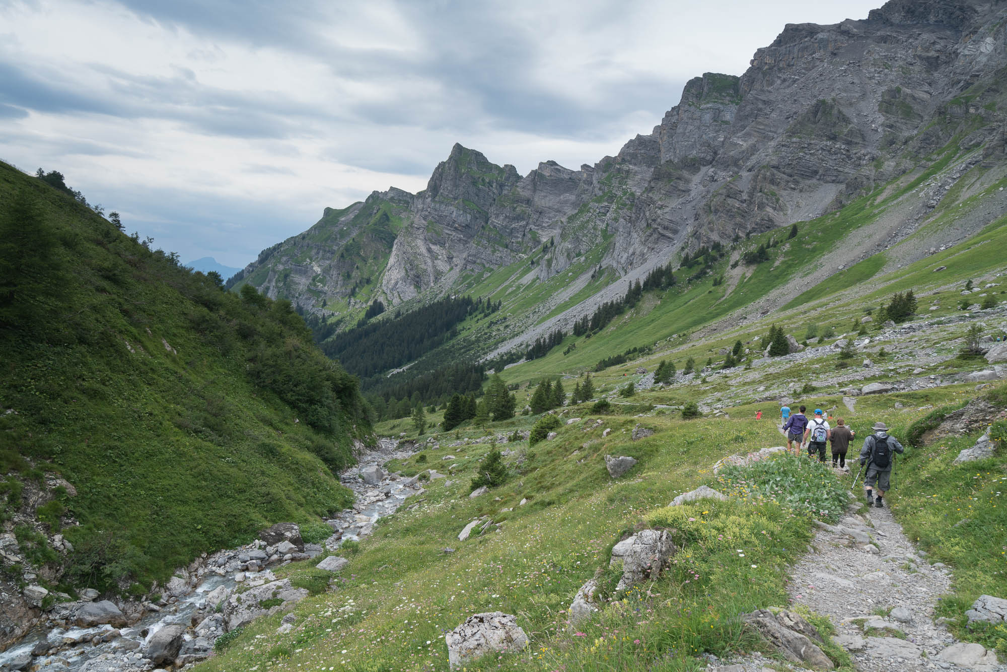 Solalex, Switzerland with the closest town, Gryon. Solalex is a great pasture/stream/hiking area with a restaurant and a couple shops at the base and a farmhouse at the top. The skylights on the roof of the house were the only entrance in the winter. You have the option of the "blue bus" or hiking. We met for a family picnic at the top and hiked down.Where lies such a beautiful space?