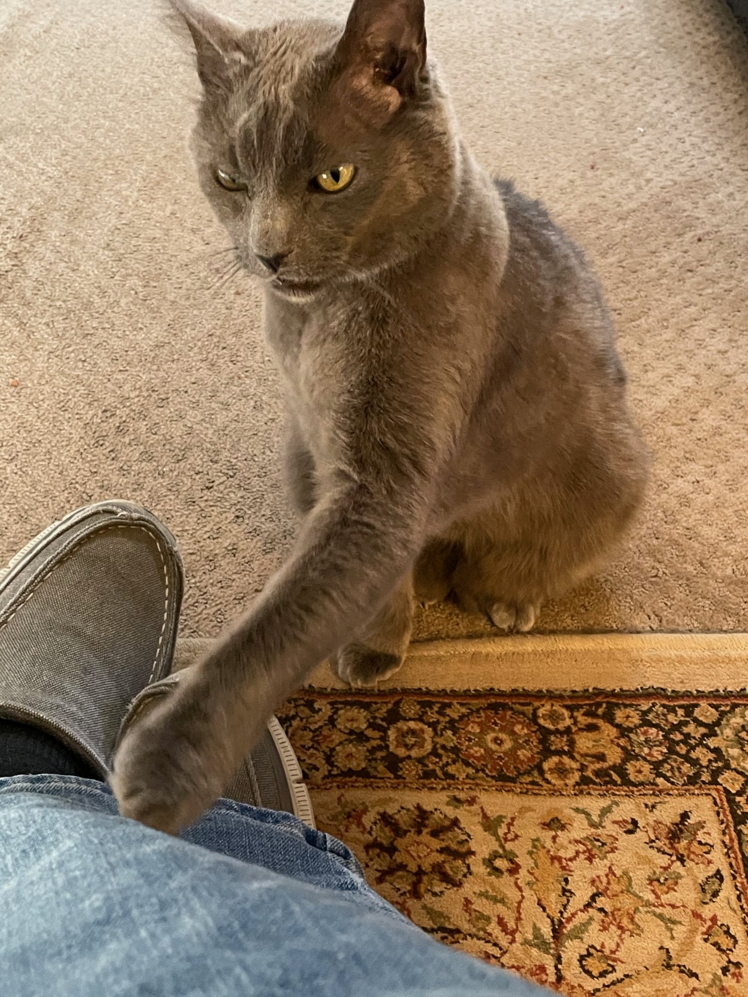 "Oh, I see me some mighty fine eating!"Yep, licking her chops at me 😸😸