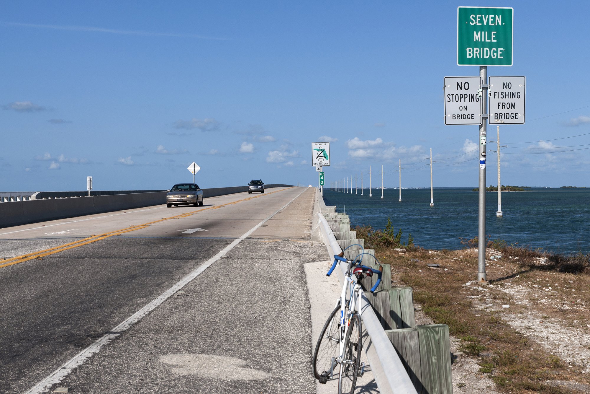 did you fish?Another 7 mile bridge. This one in the Keys. Despite the sign, did have to stop for a photo op. Riding my bike over, really able to enjoy the color changes in the clear water.