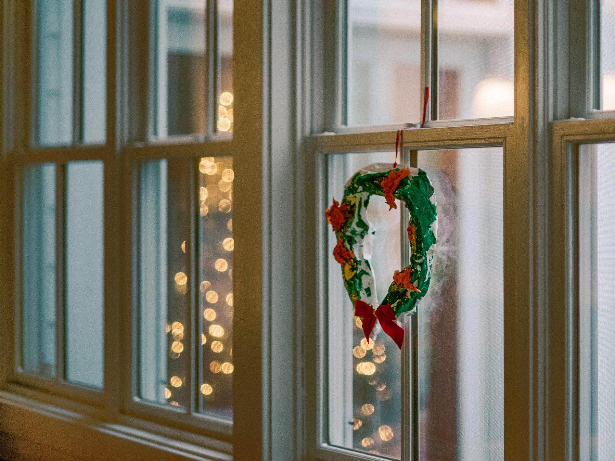 I don't do a lot of holiday decorations; I like having a tree and a wreath on the front door, but otherwise I can live without most of the other stuff. But we do have a few preschool things we've saved over the years, and this little wreath is one of them. Even though my kids are in their teens now, it's nice to have some decorations made by three year olds still around.
