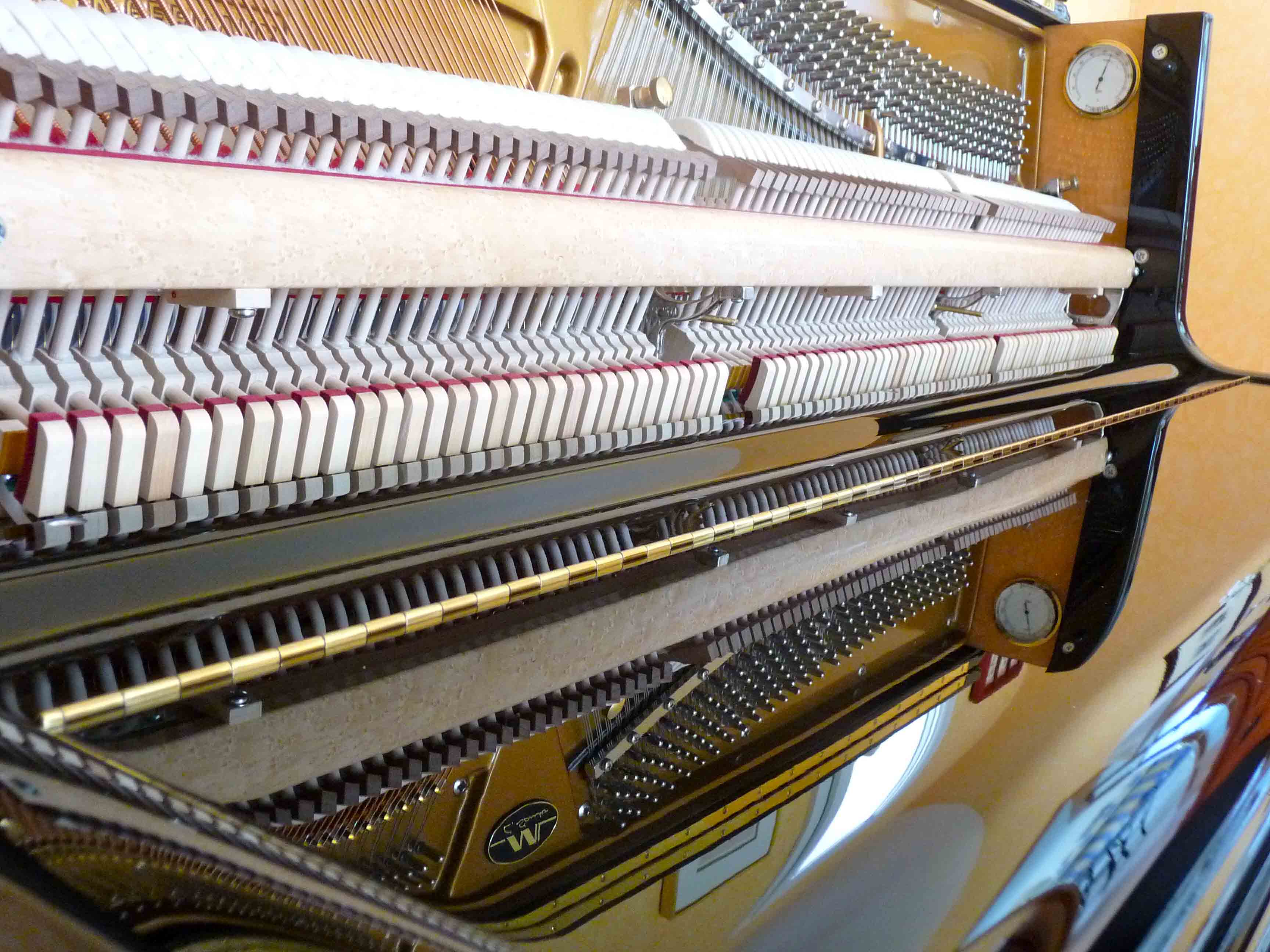 I am fascinated by that sound board. It looks like a grand piano tipped on it's side. So what function if any does that gauge have. It looks like a knob in the right corner. Is that just a bracket or is that a valve? Does that stay exposed all the time or is there a cover for the hammers. I don't know if I would want to cover it.Yes, a humidity gauge - a special feature on the MasterClass series. All the range of this manufacturer (along with Steingraeber & Sohn) are perhaps one of the best guarded piano secrets - in terms of musicality and quality.
