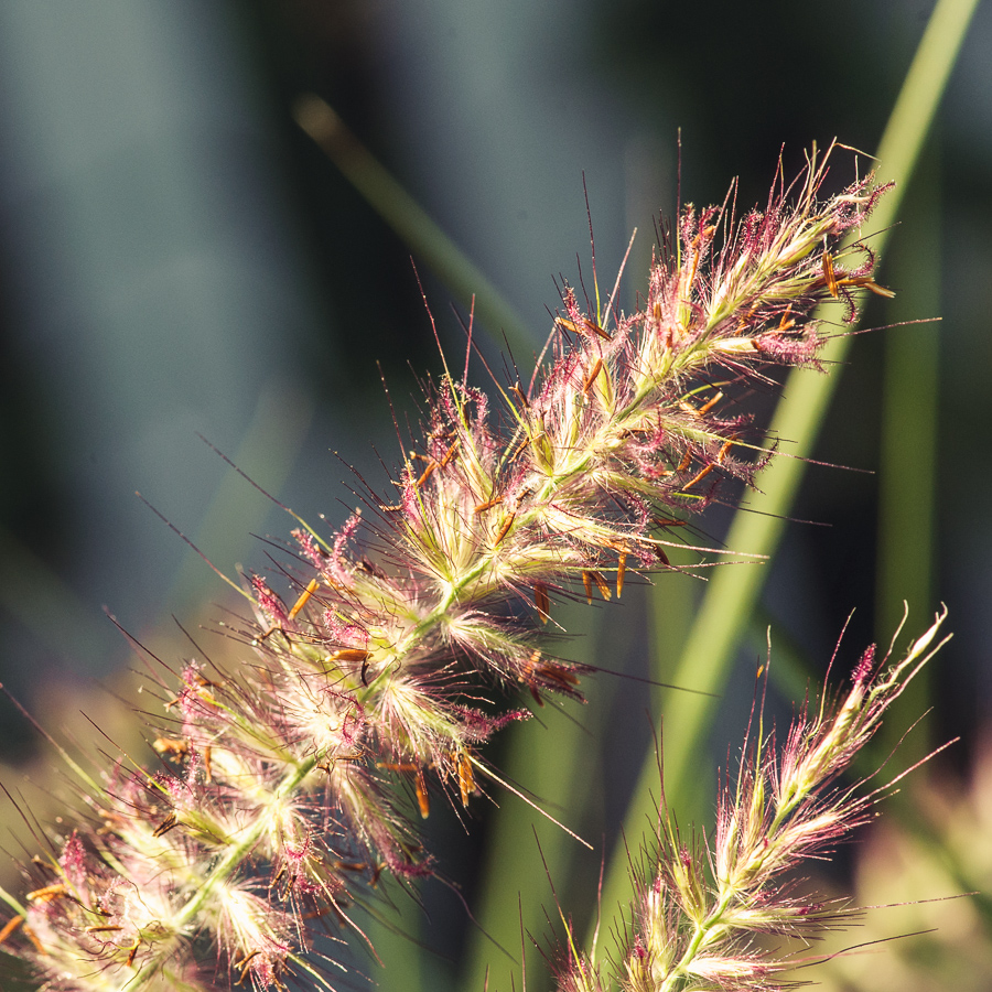 The stick to me as well but I've probably got hairier legs!I always think that the ornamental grasses are a late summer thing, but here mine are, already blooming (if that's the right word). Those little spikey things stick all over me when I go out to weed! But awfully pretty as a closeup.