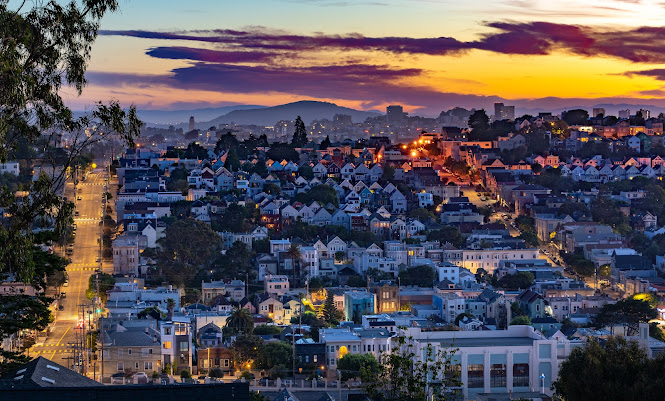 A super nice image and capture of the transition between a city at night and the early morning light!
