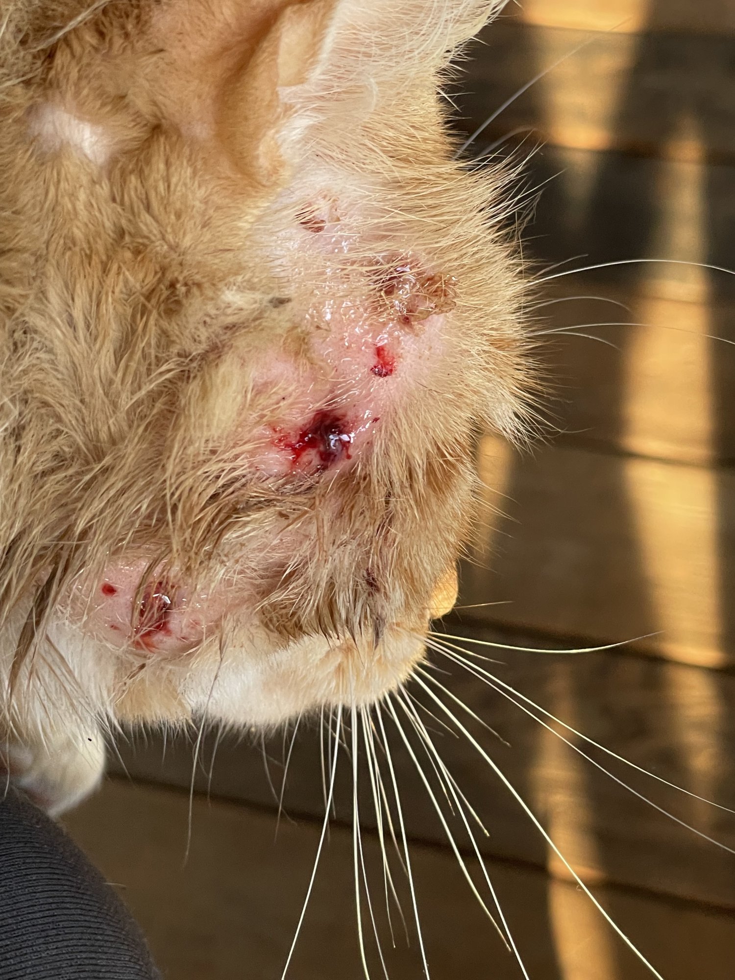 Ouch!Ginger cats are tough. My porch bully got in a scrape with somebody🙀 Poor guy. He really is a lovable boy.View attachment 2019792