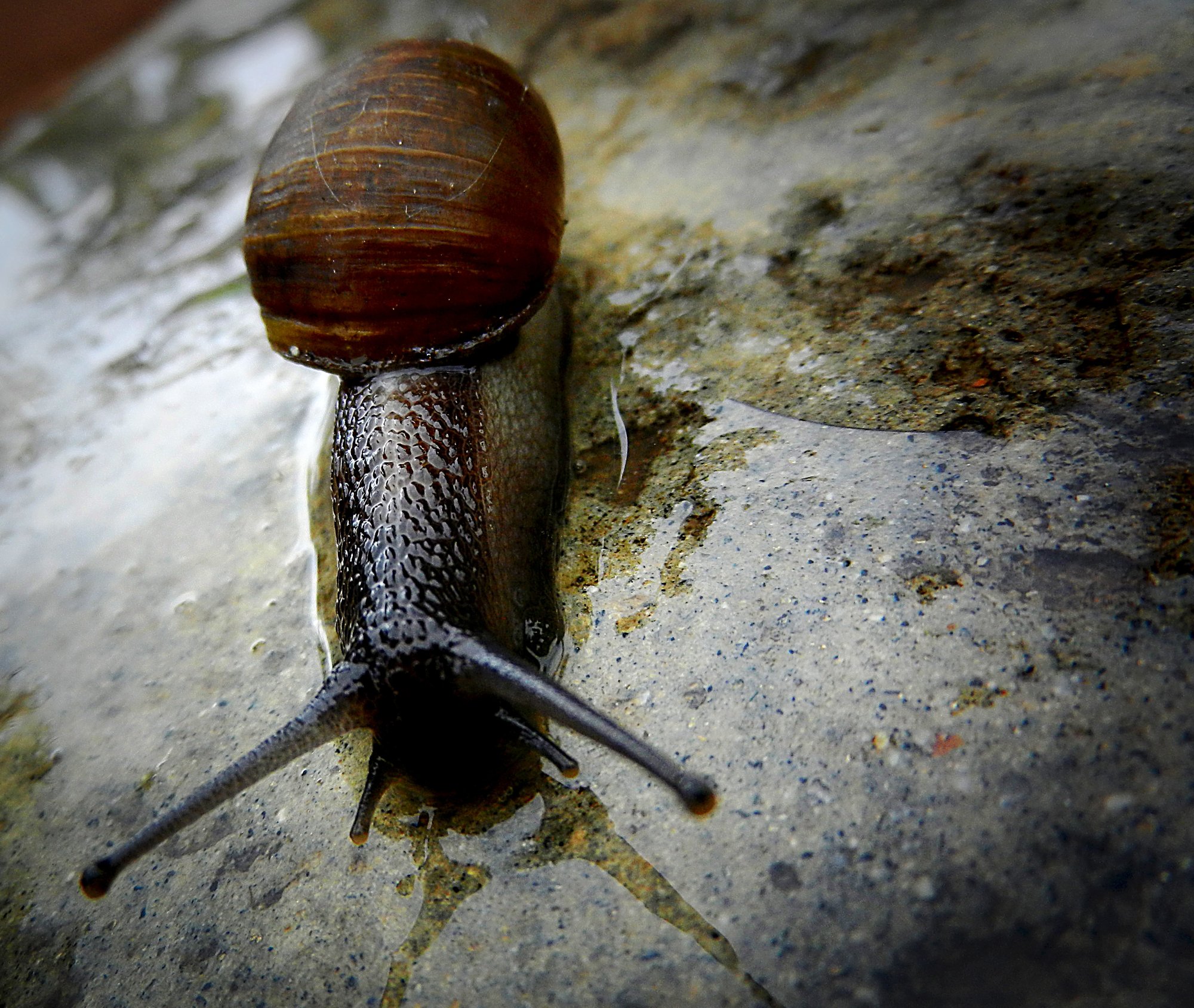 I find this stunning in a sort of primordial way!Snail on wet concrete