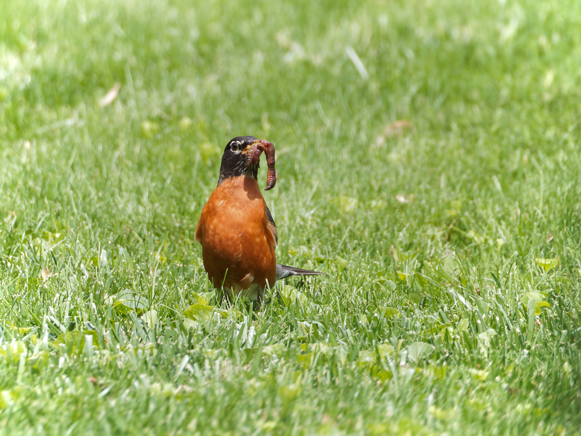 Reminds me of back in 2002-03 when we had a robins' nest in a bush right outside one of our windows, and so we could see the babies and everything. I remember seeing the mother robin feeding her young earthworms and moth caterpillars, and how once the babies were old enough to open their eyes they'd just be content when alone in the nest, until the mother comes up to the nest and they all perk up and open their beaks, thinking they're about to be fed.