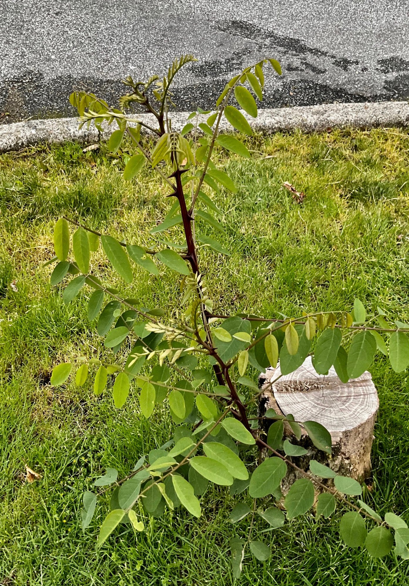 Actually, it's highly likely that this is just a stump sprout of the original tree (black locust), living off the existing root system. In other words, I'm not dead yet!... "life goes on - from one tree to another" .. a view that caught my eye during a local walkabout early yesterday morning.
