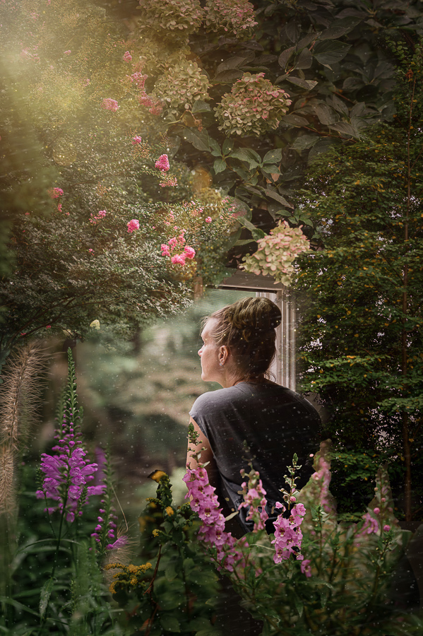 So something really different from me. A couple of my friends just launced a collaboration course talking about shooting and editing creatively. My post yesterday of my dog was inspired by one portion about freelensing, and I did freelens that image. My other friend does a lot of concept photography where she works with quotes or feelings and makes more artsy pieces rather than strict photographs. So I decided to see what I could come up with for the concept of "bringing the outside in." I did a self portrait in my studio and then went around my house and photographed a number of different plants and layered them all around me, plus added a light and a rain overlay.