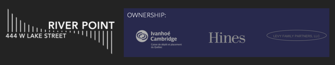 River Point is a recently completed 52-story, 1.08 million square foot office tower located in Chicago’s West Loop at Lake Street and the Chicago River. The design features a striking convex form that provides panoramic city views. A graceful parabolic arch frames the sloped red travertine lobby wall and reflects the river for passers-by. The building’s dramatic three-story lobby opens onto an expansive 1.5-acre riverside public plaza and newly created Riverwalk, the latest addition to Chicago’s unique riverfront.