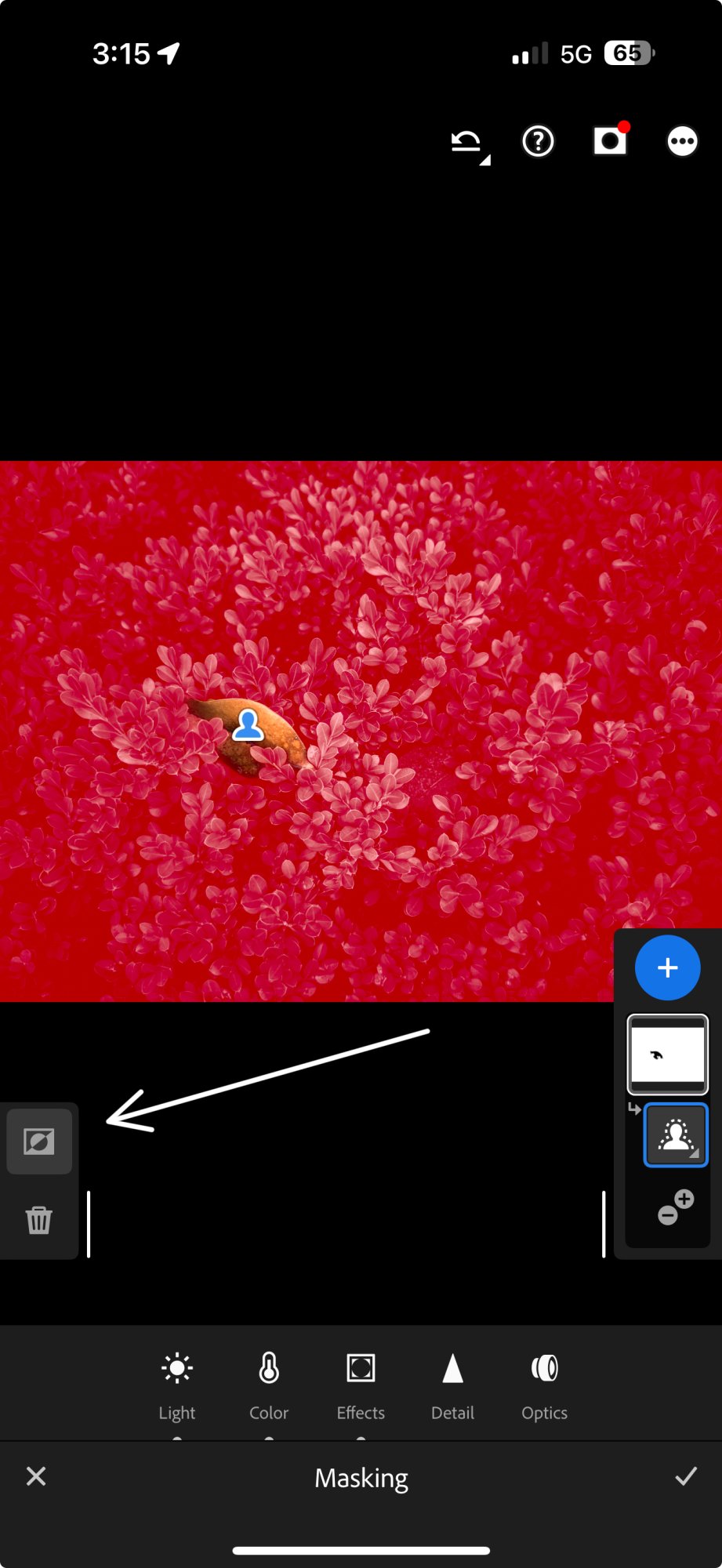 thank you for your time explaining it..Thanks. If you’re talking about putting one part of this photo in black-and-white and the leaf in color, this is basically the way I did it. Using the mask tool, and it did highlight the leaf and I selected inverse which reverses the selection to the rest of the photo and desaturated the image to where it was black and white. I then adjusted it how I wanted. Then I adjusted color/Dehaze tool to increase or decrease the contrast of the image. So it’s fairly simple. Just open Lightroom, click on the mask tool which is the gray circle at the bottom if you’re using it on a mobile device and select subject and do the inverse which is shown by the white arrow in the screenshot that I took, and it will reverse the selection, leaving the original subject and color while everything else is highlighted in red, and whenever you slide the saturation tool down to the left to take all the color away. It goes to black-and-white or however, you want it to look. in the screenshot that I took everything that is highlighted in red will be affected with adjustments. I don’t have a video tutorial on how to do this as of yet, but it’s just that simple masking tool that is used for the conversion. I’m at work right now so if you need more assistance, just reply to this post and I will help further when I get home