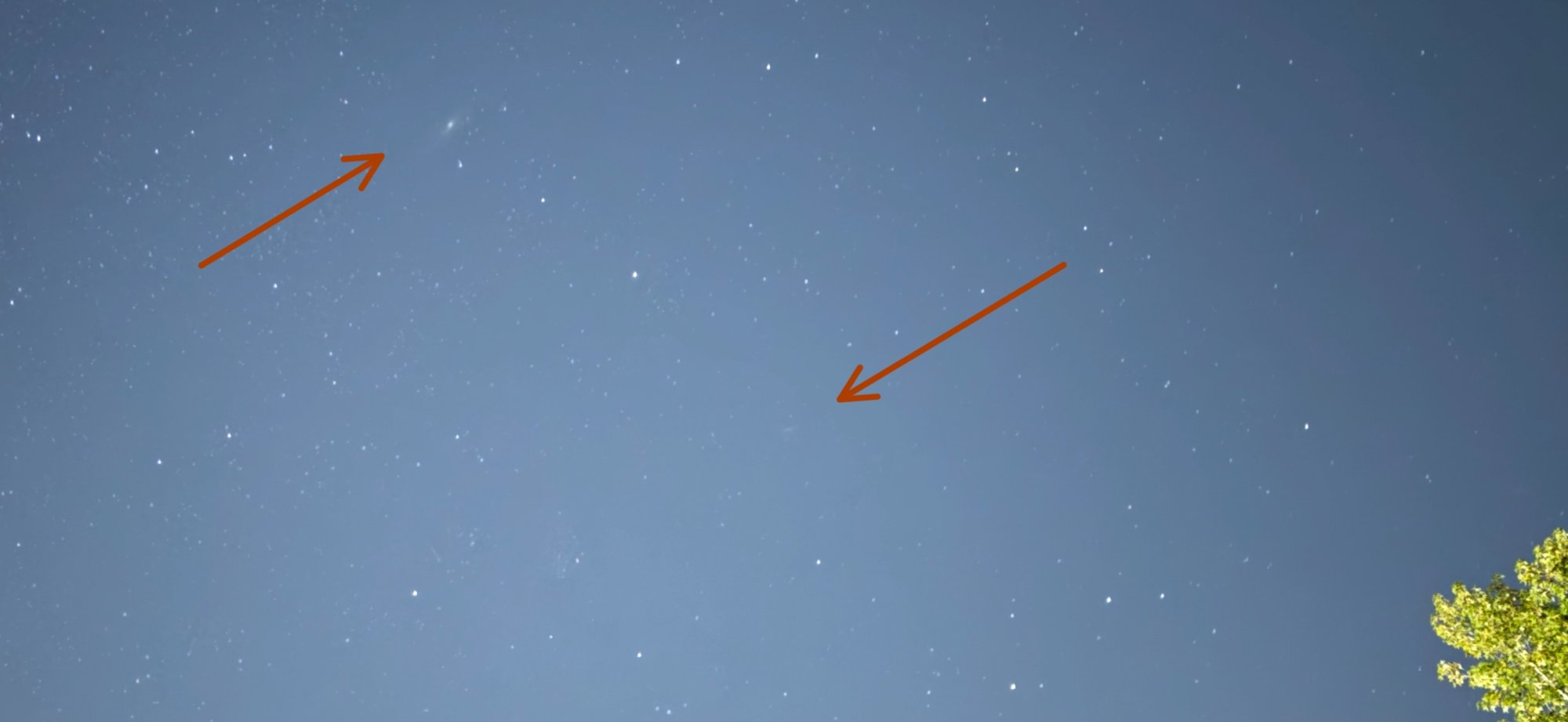 The 16 pro max using night mode for 30ā shows more stars than the 15 pro max using night mode and ISO 640. The images are heavy cropped screenshots of the un edited ProRAW image. Arrows point to two galaxies, M31 & M33. In the 15 pro max 30ā night mode image, M33 is barely visible and fewer stars are seen compared to the 16 pro max. Now all I need is a dark sky and good transparency. Hopefully a cold front will come through soon.