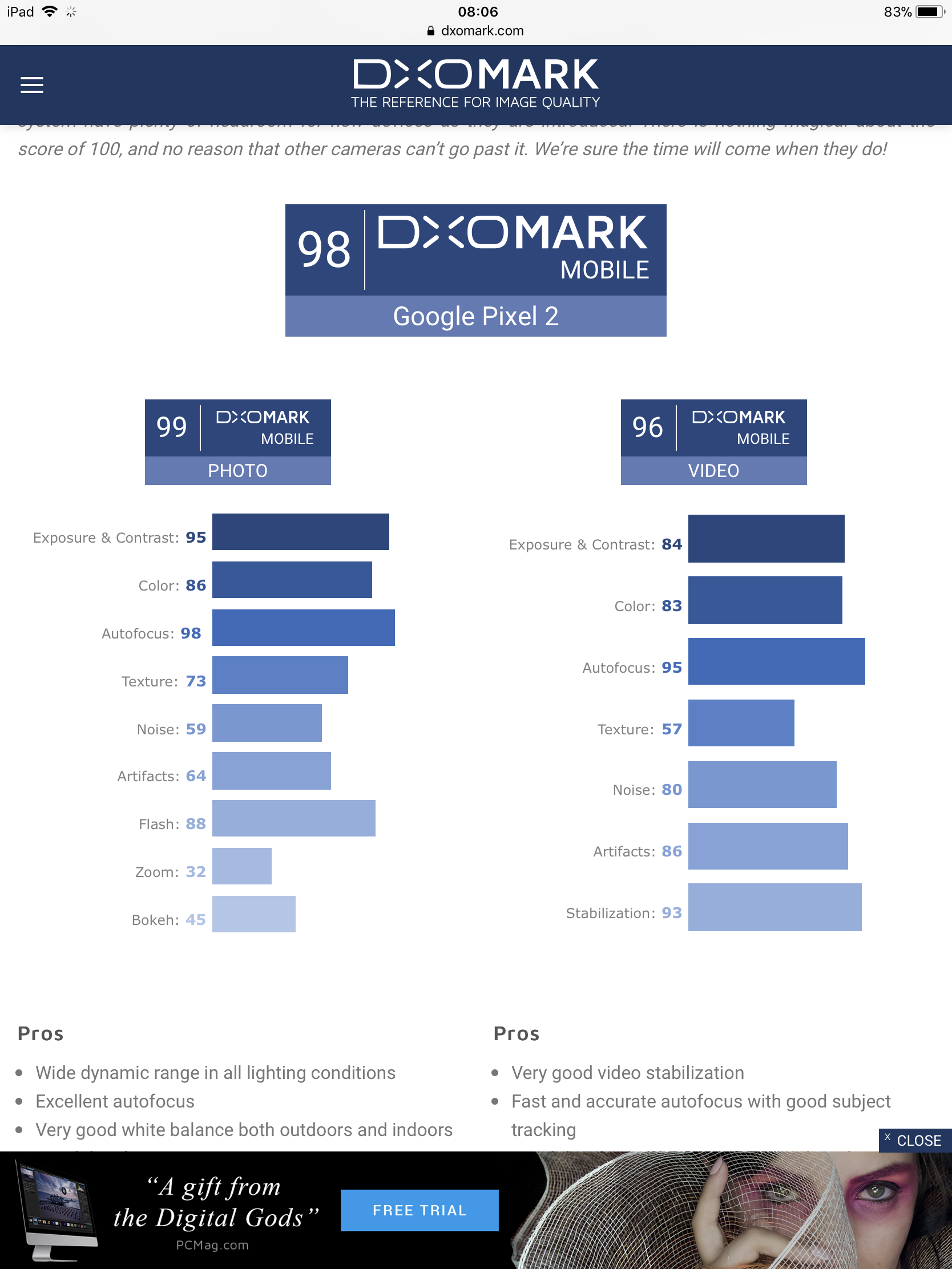 Which is interesting as DDXMark rate both the Pixel 2 and the Note 8 a 45 for bokah/portrait and the X at 55.