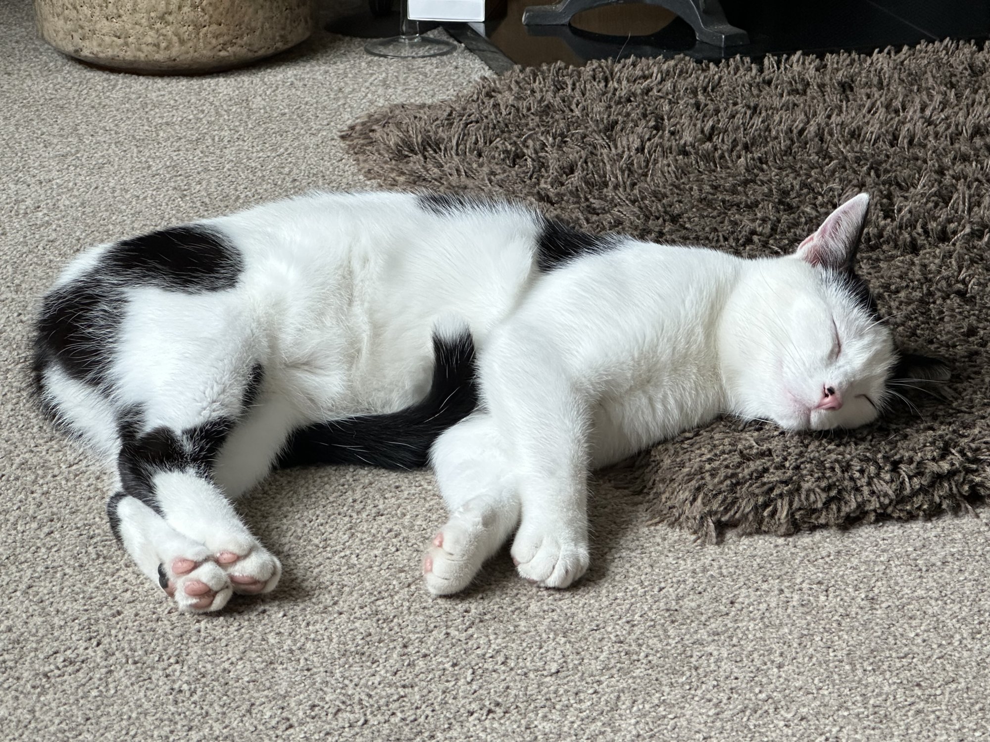 He's just appeared now, late lunch and out cold...