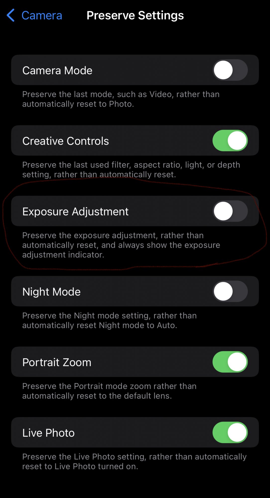 Is your setting to shoot in raw ? Heif or standardTried this, but it doesn't change anything with the post-production. This just makes it so the next time you use the camera, it remembers your exposure settings from your previous shot.