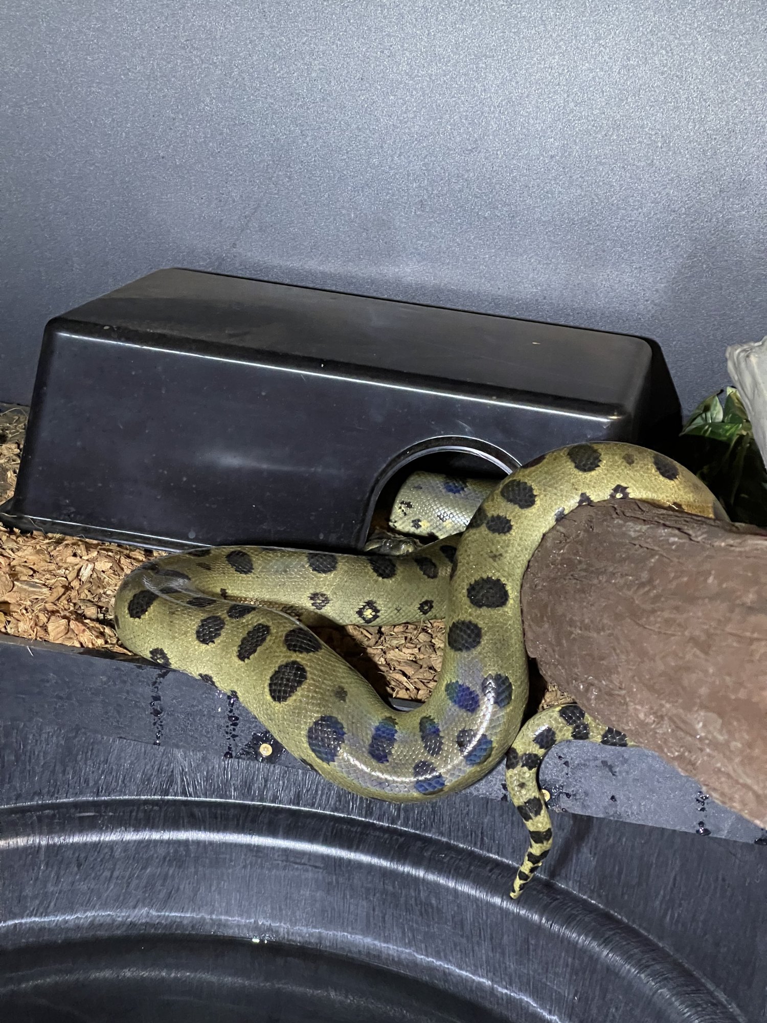 Green Anaconda, nice, I use to have a Ball Python and Boa Constrictor, I haven’t got the room or experience for a greenNot the best lighting, and he doesn’t like to sit still