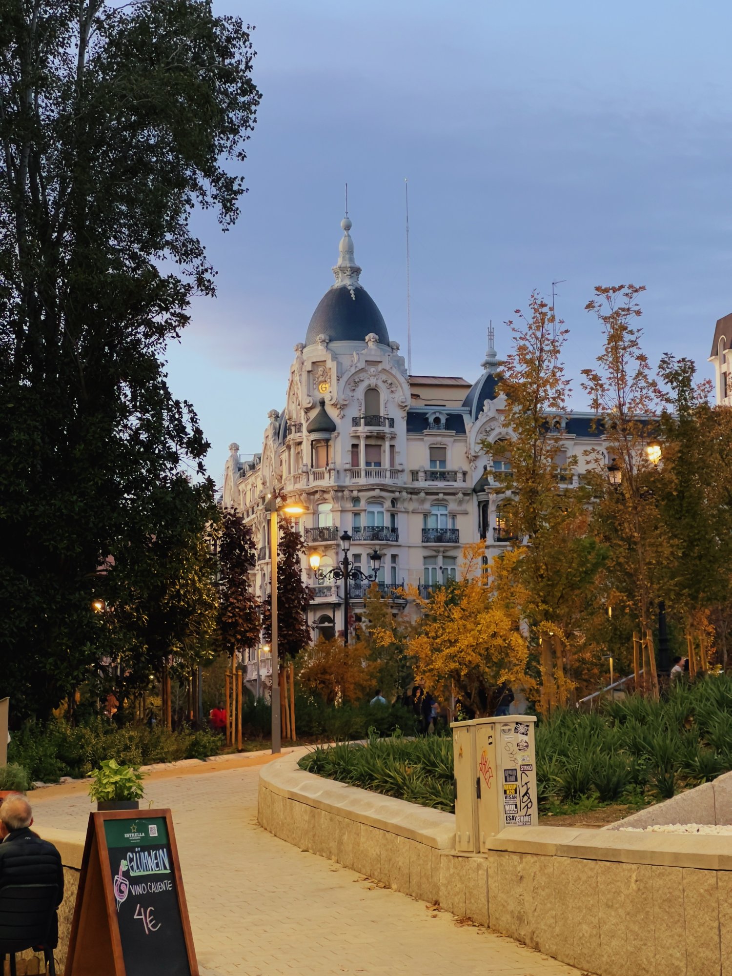 The photo was taken in Madrid, Spain, specifically in Plaza de España.