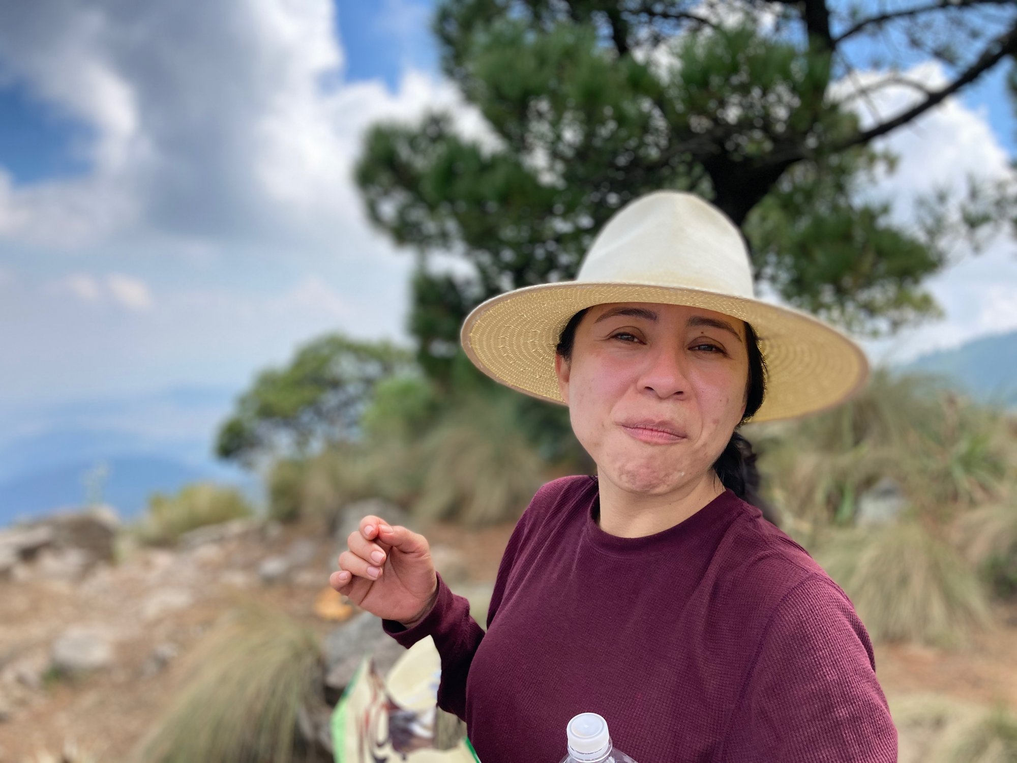 Near the top (the jackets and sweaters had come out by this point, also most other people's facemasks, that's why I didn't approach them)