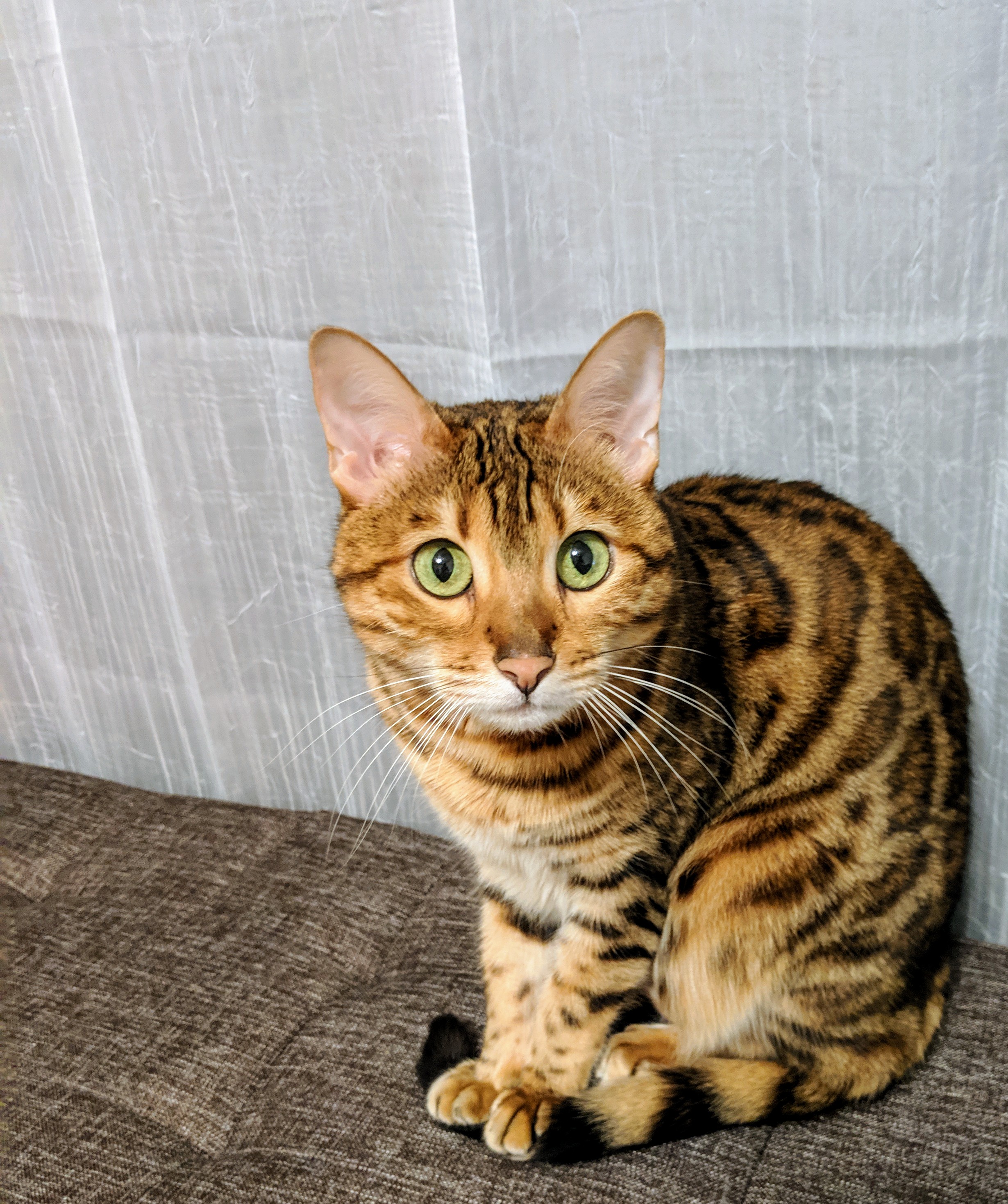 Yeah, she's a Bengal. I don't recommend a Bengal for those who want a low maintenance cat! haha