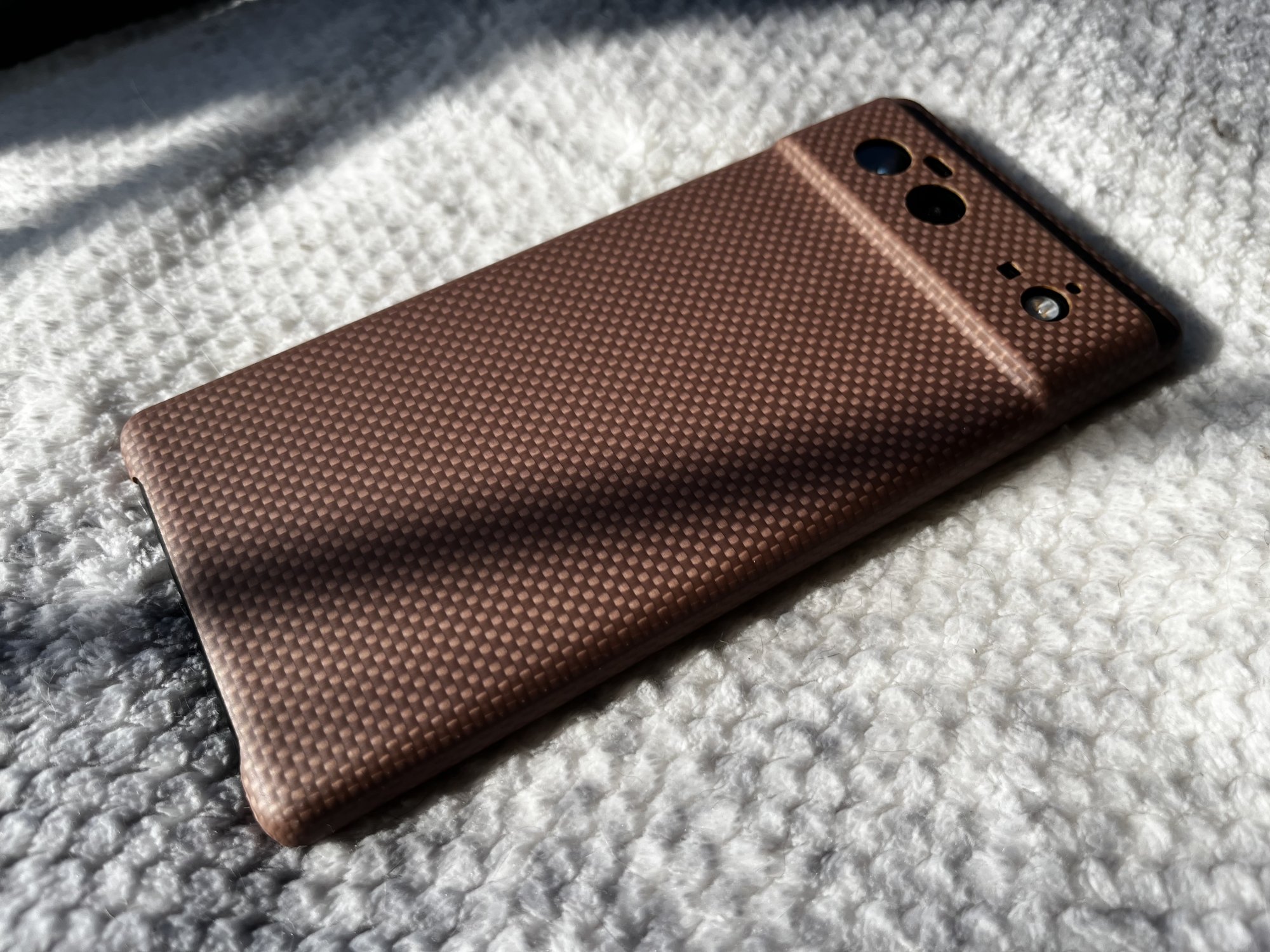 So this is the “Coffee” carbon fiber Latercase. The texture on this particular version is remarkably nice. It's a bit lighter than this picture in most conditions.