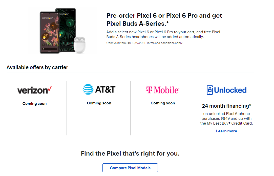 Thanks, I was able to order a regular 6 in sorta seafoam for pickup on the 28th and it comes with the free buds.I ordered it through the app. I received an email notification as well. Just search for Pixel 6 in the app and scroll down past the older Pixels and the 6s should be purchasable.