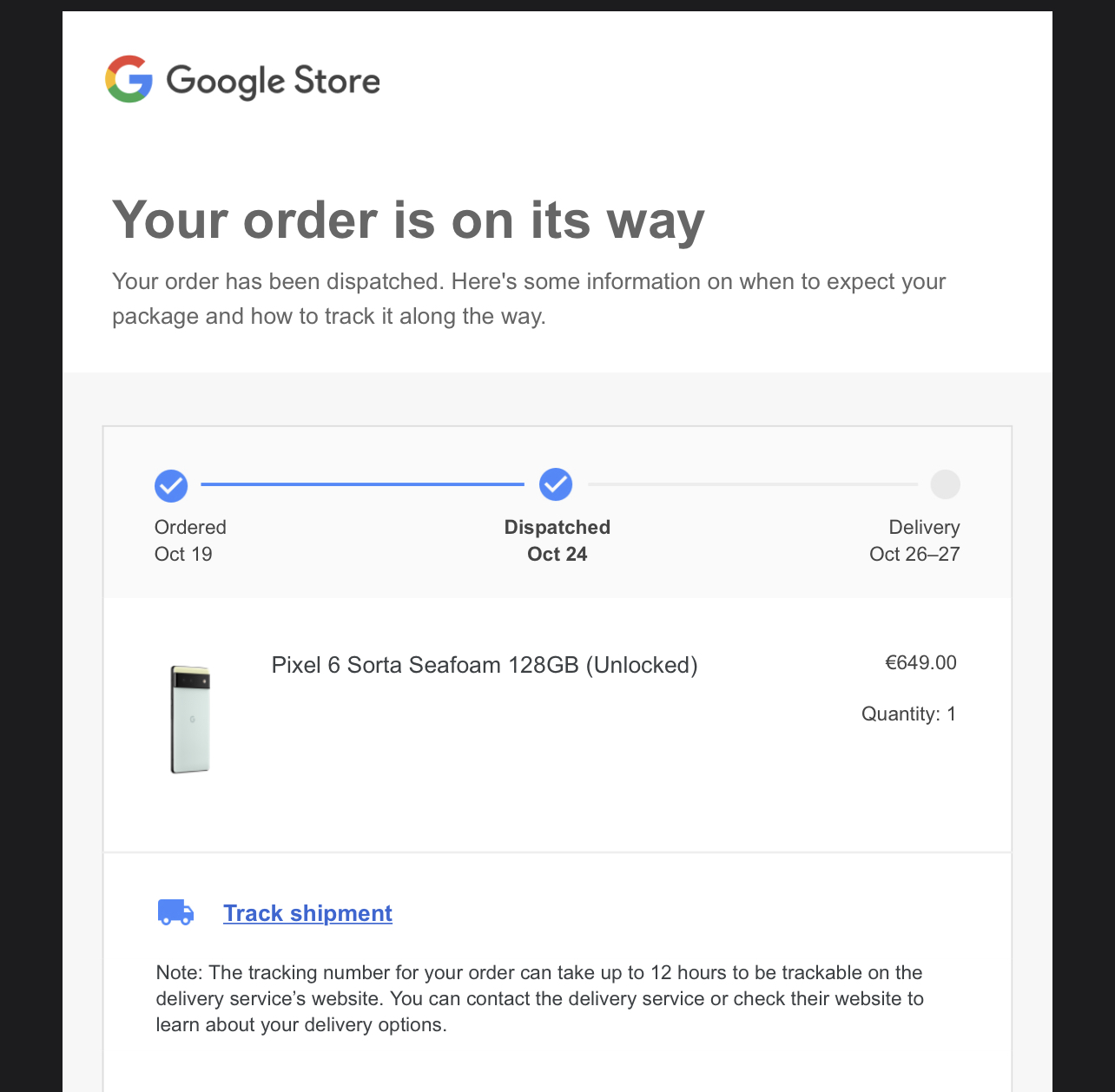 Back to the Pixel, I'm fully expecting it to ship tomorrow and be in my hands on Tuesday. Is there a specific time when the embargo lifts tomorrow?