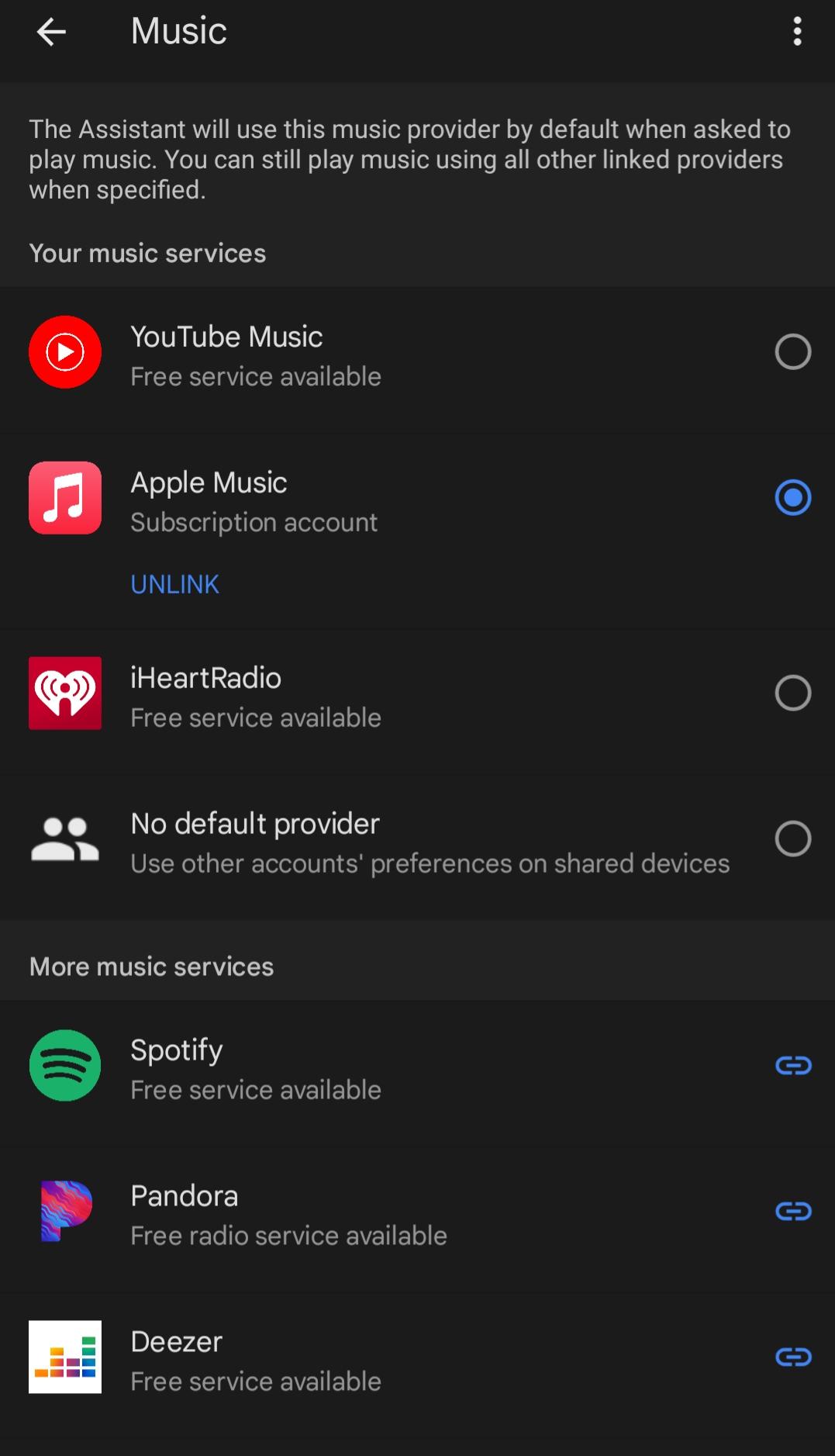 Linking your Pixel's Assistant to Apple Music (Apple account and subscription required)