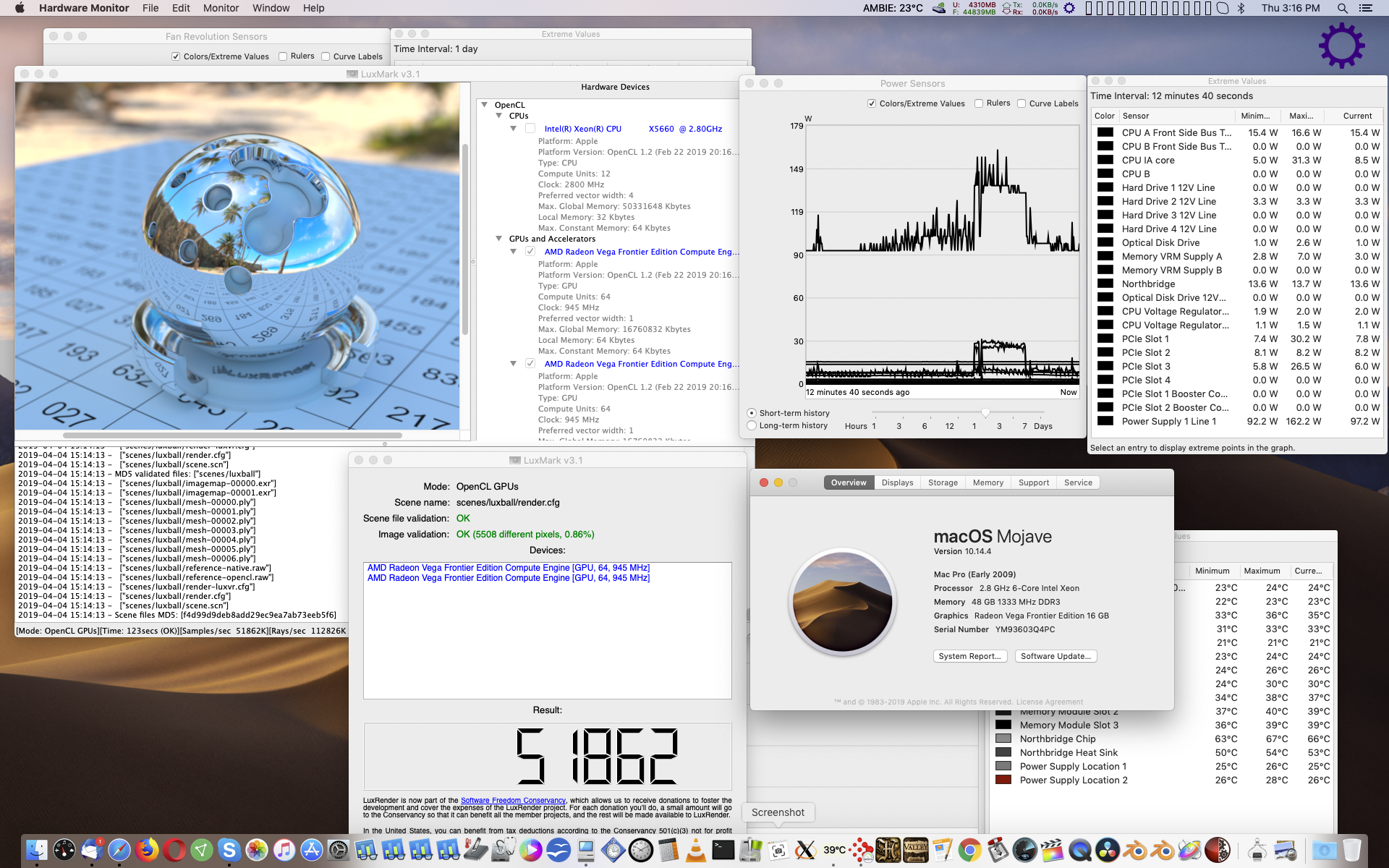 You know what's so interesting ? With the internal wiring provided ( 4 x 8 pin PCIe booster ) , we could actually install two of your Radeon VIIs into my cMP Mac . Maybe getting a Luxball score of over 100,000 ?