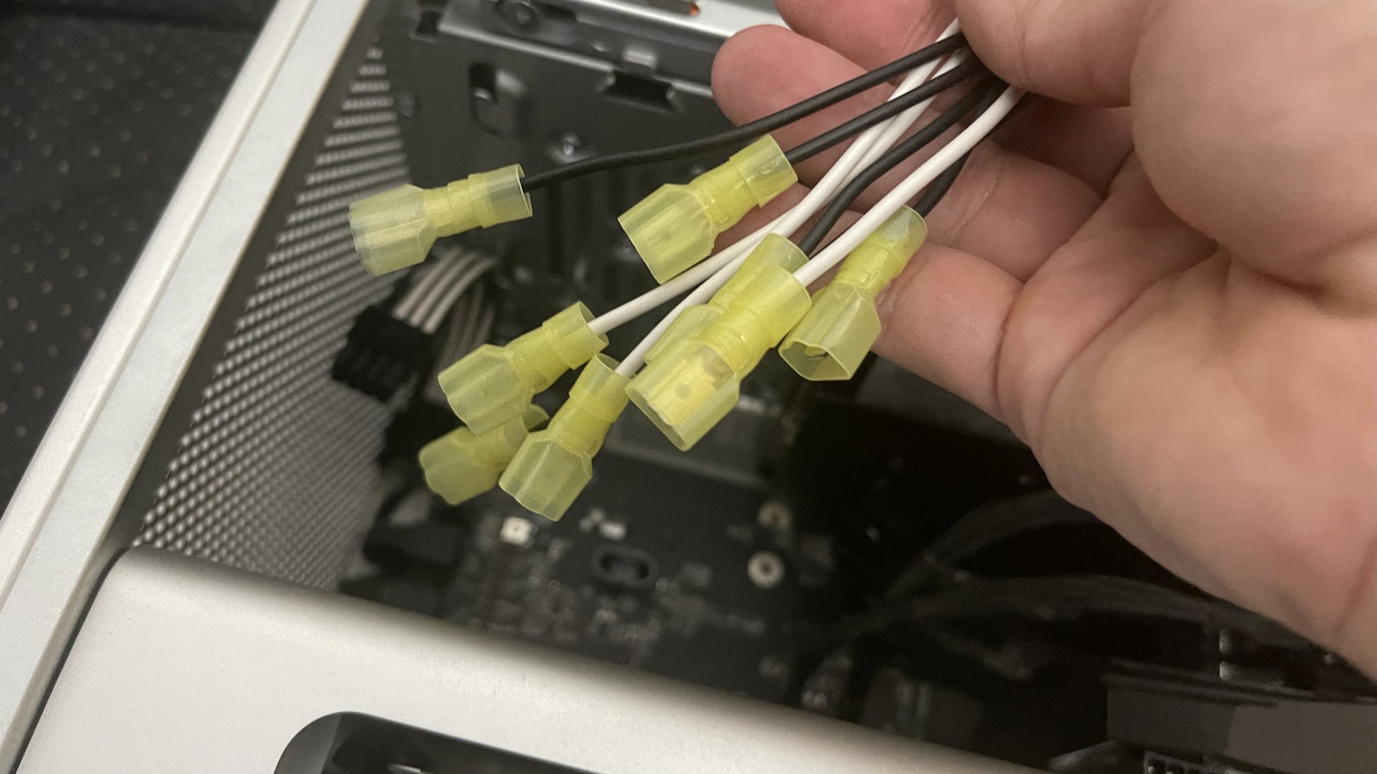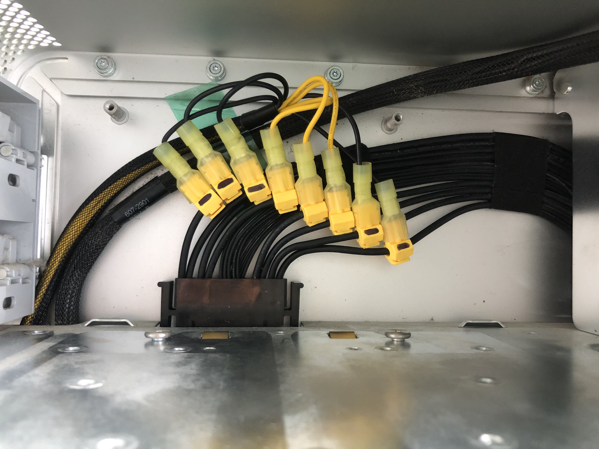 I have a question? considering the two back plane aux connections are rated 75W. Each cable has three 12v wire rated 25W each, is it possible to bridge the 3 12v and corresponding grounds and connect them to pins 1 & 5 in a six plus two way connector x2, then using the pixla method tap all four of the 12v and grounds to supply pin 2&3 and 6&7 to provide two six or eight way connections. The two aux connections will draw 50W, as do each of the four 12v pixla connections. Loop ground connection to pins 4&8 on each connector.