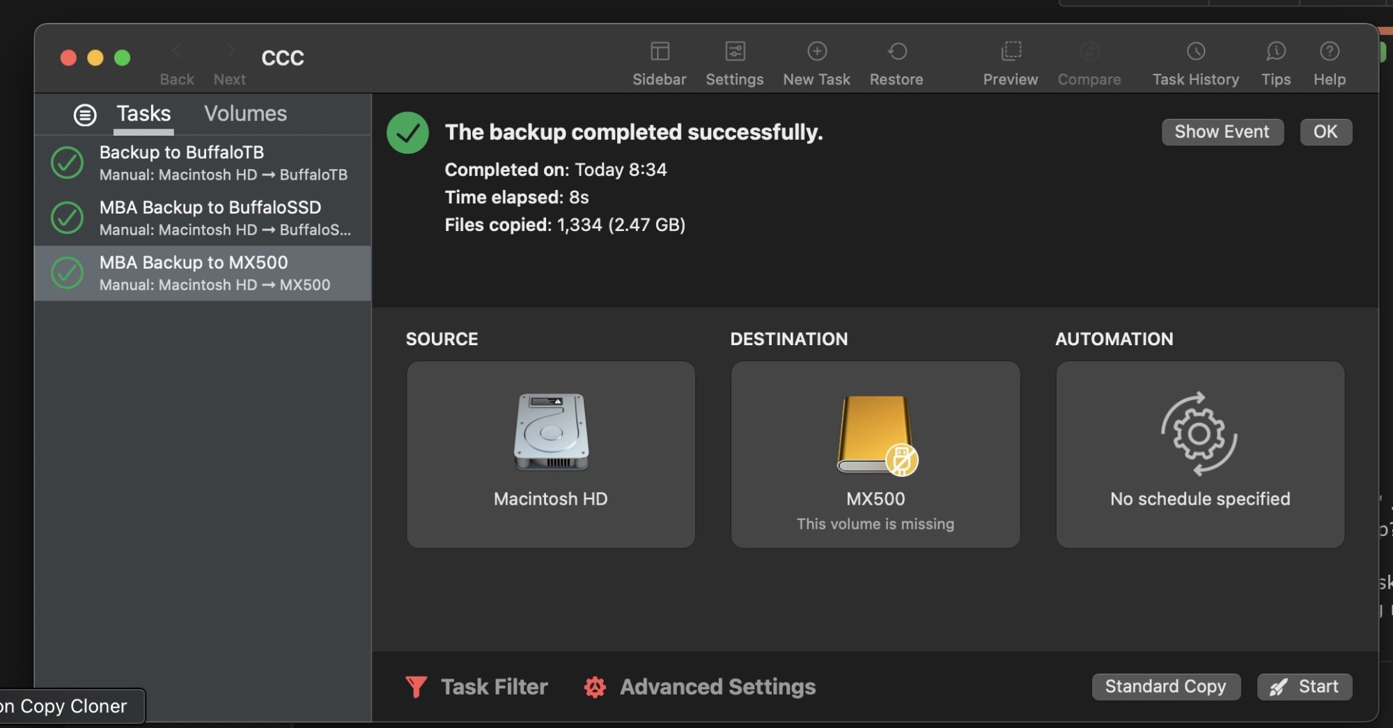 ). Time Machine is easy and convenient but has been known to foul up - especially if you're using it with a NAS.